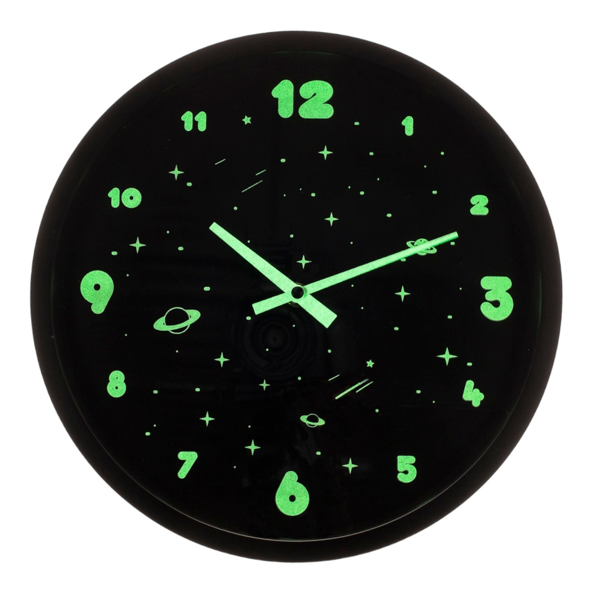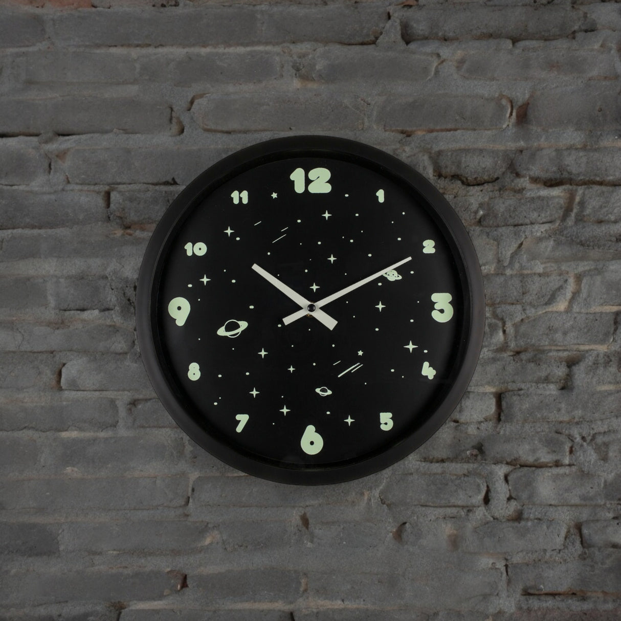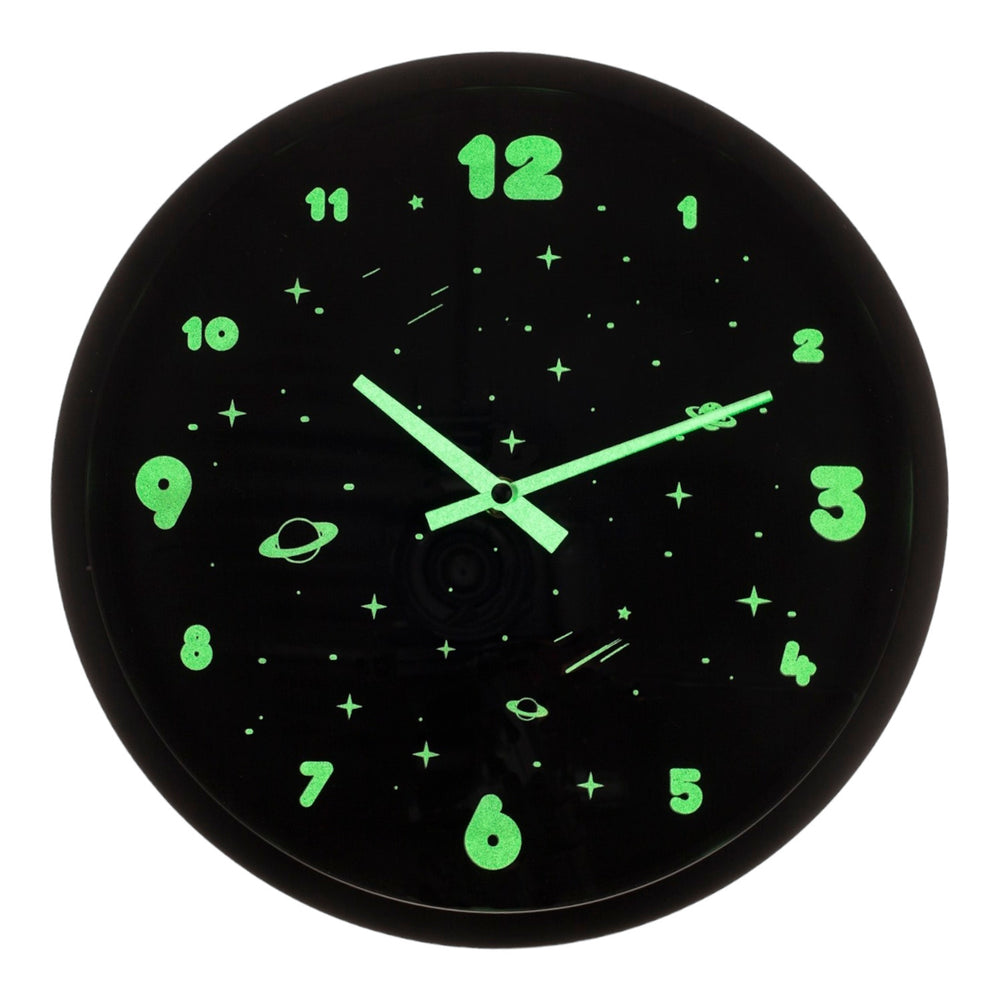 1x Glow in the Dark Weltraum Wanduhr Kinder Space Uhr für das Kinderzimmer.
