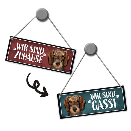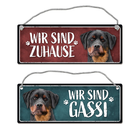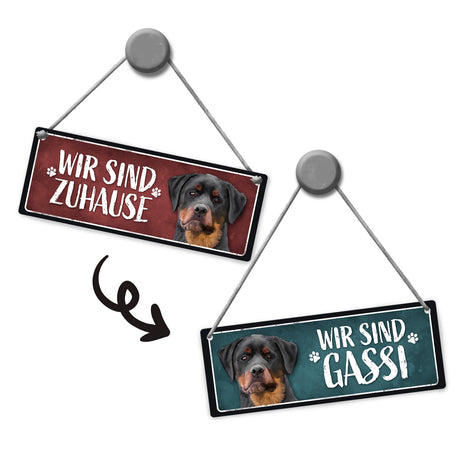 Wir sind Gassi/Zuhause - Rottweiler Wendeschild mit Kordel