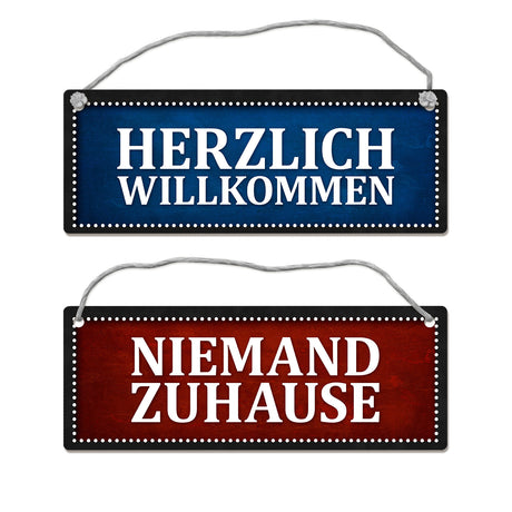 €9,95Grundpreis /Nicht verfügbarAuf LagerNiemand Zuhause oder Willkommen Wendeschild mit Kordel in Rot und Blau
