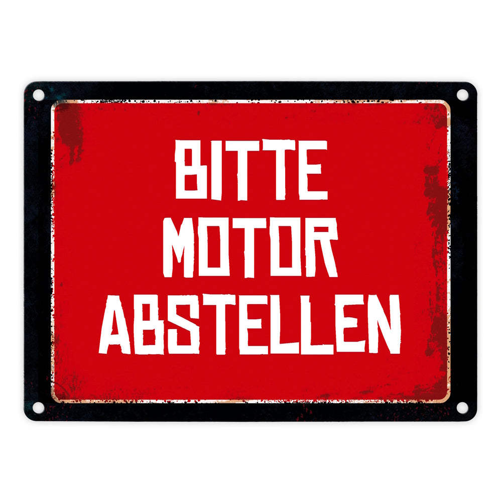 Bitte Motor abstellen Warn- und Hinweisschild im Used-Look ist auf Lager und wird versandt, sobald es wieder verfügbar ist