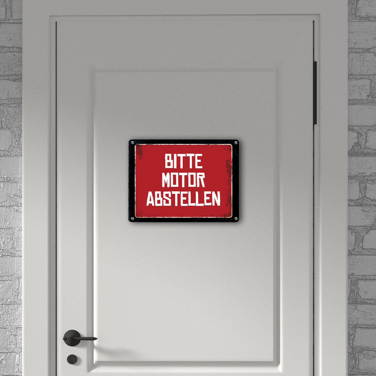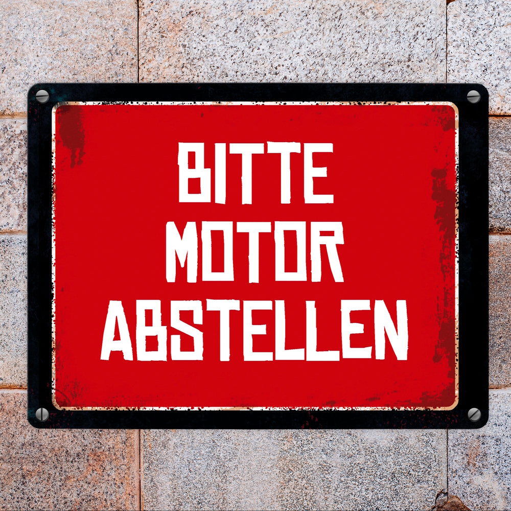 Bitte Motor abstellen Warn- und Hinweisschild im Used-Look