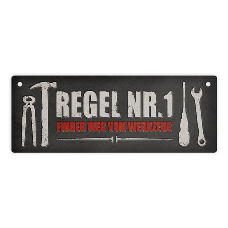 Werkstatt Metallschild mit Spruch: Regel Nr. 1 Finger weg vom Werkzeug
