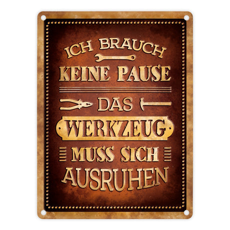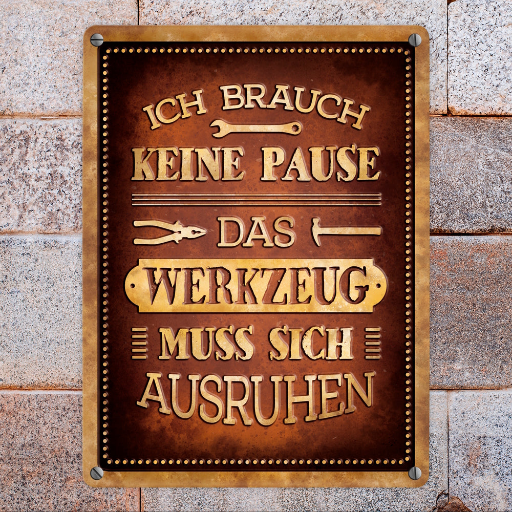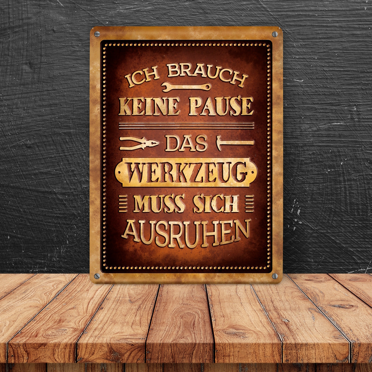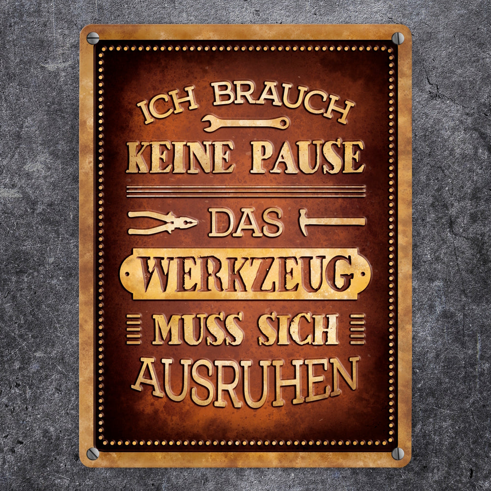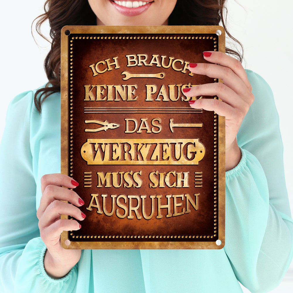 • 1x Das Werkzeug muss sich ausruhen Metallschild in der gewählten Größe