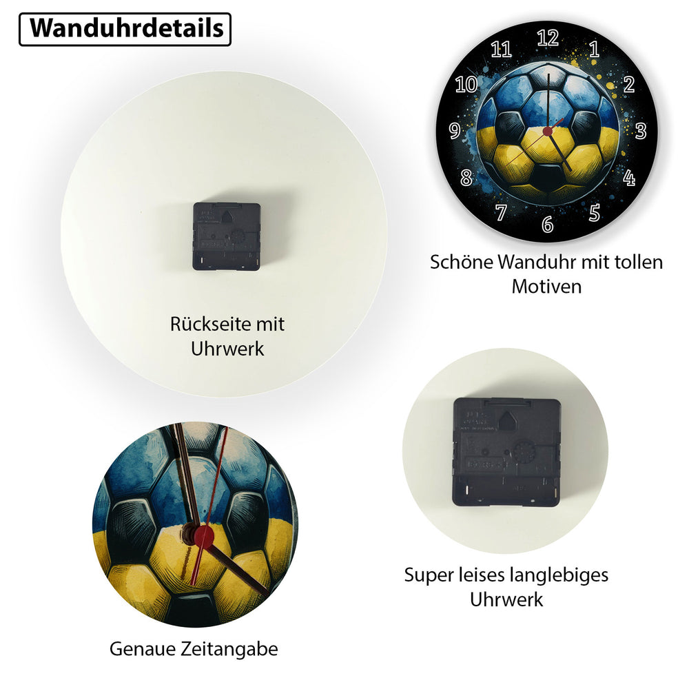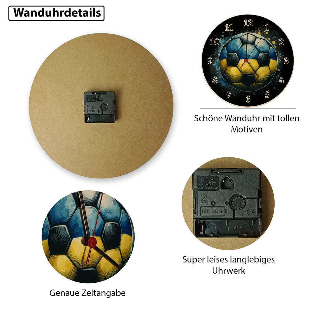 • 1x Fußball Ukraine Flagge Wanduhr in der gewählten Variante