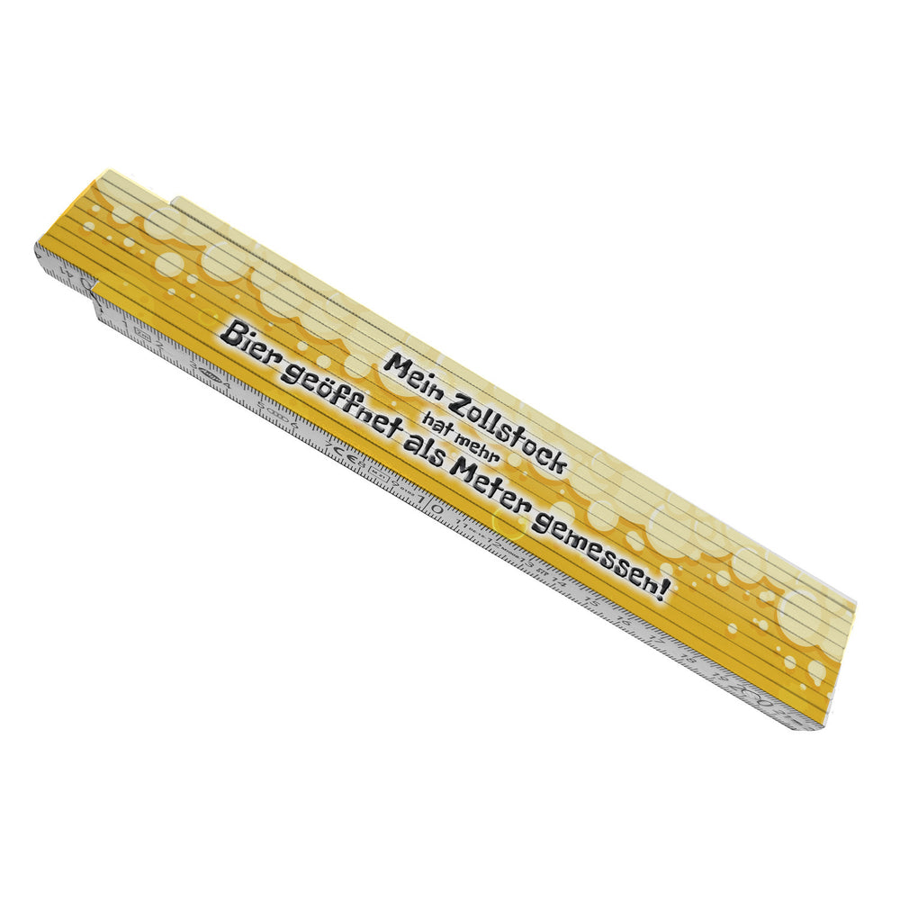 Meterstab aus Holz mit Biermotiv und Spruch: Mehr Bier geöffnet als Meter gemessen