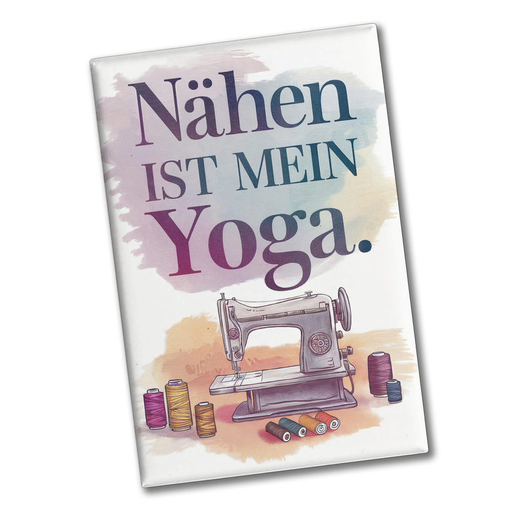 Dieser rechteckige Magnet zeigt ein lustiges und beruhigendes Motiv: Eine Person in Yoga-Pose, die entspannt an einer Vintage-Nähmaschine sitzt, umgeben von bunten Garnspulen. Der Spruch "Nähen ist mein Yoga" prangt in großen, fetten Buchstaben da Hinweise: Größe: ca. 8x5,5 cm