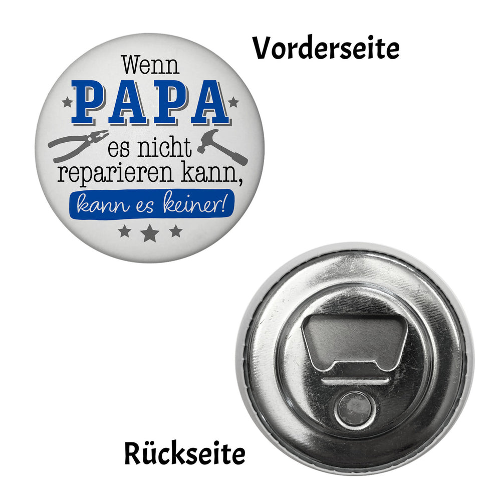 • Wie ein Kühlschrank ohne Magnet ist eine Party ohne Lacher! Unser "Papa Geschenk Magnet" rundet jede Gartenparty ab. Knackig rund und mit einem Spruch, der echte Handwerker-Herzen höherschlagen lässt: "Wenn Papa es nicht reparieren kann, kann es keiner!" – das perfekte Zubehör für den heimischen Vater-Batman!