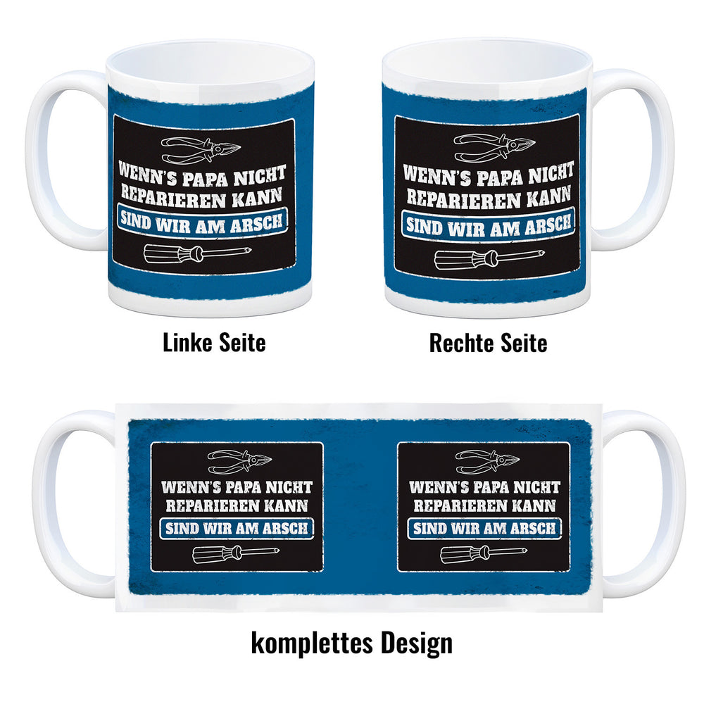 - Lieferumfang: 1x Kaffeebecher mit Spruch: Wenn Papa es nicht reparieren ...