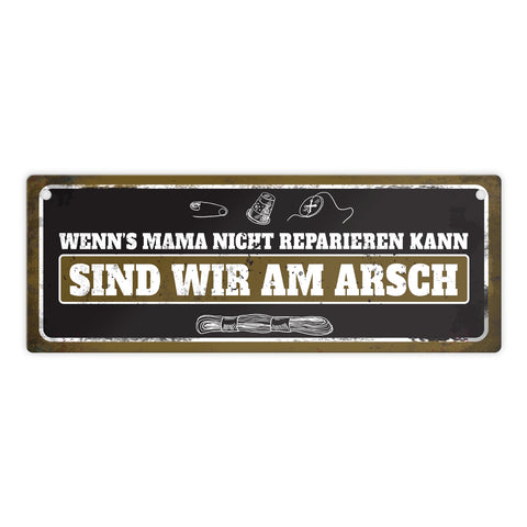 Metallschild mit Näh Motiv und Spruch: Wenn's Mama nicht reparieren kann