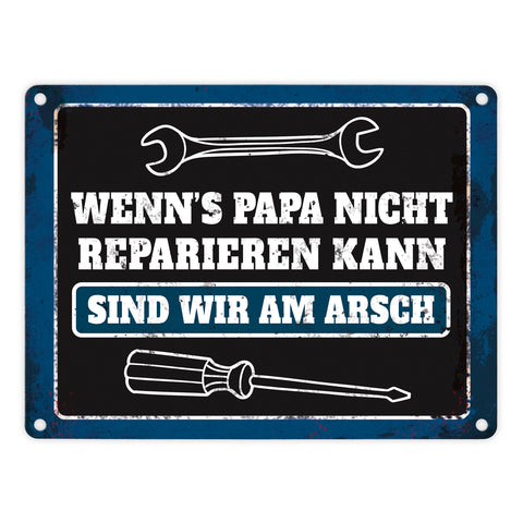 Metallschild mit Spruch: Wenn Papa es nicht reparieren ...