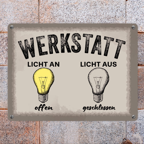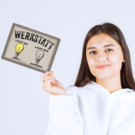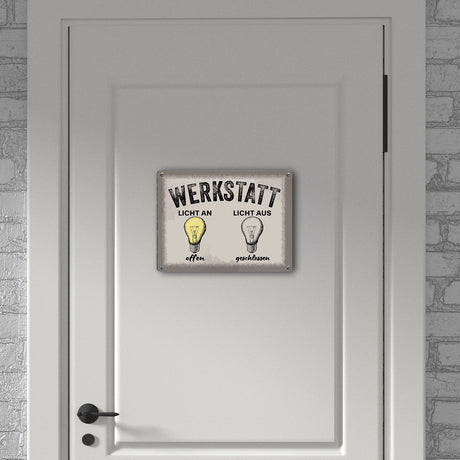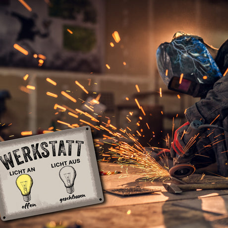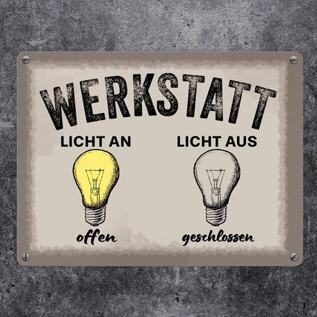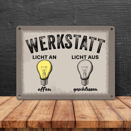 €11,95Grundpreis /Nicht verfügbarAuf LagerÖffnungszeiten Metallschild in 15x20 cm mit Spruch Werkstatt Licht an offen aus geschlossen