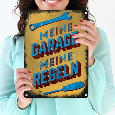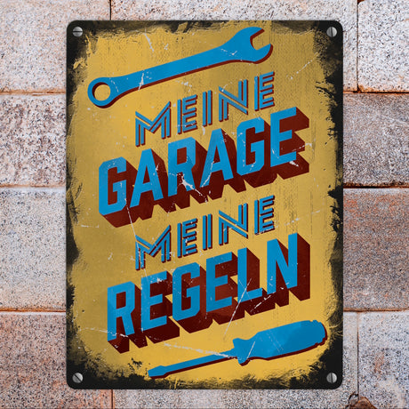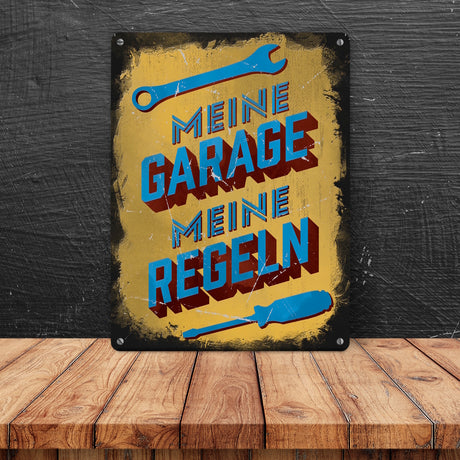 Ab €8,95Grundpreis /Nicht verfügbarAuf LagerVintage-Garage Motorrad Metallschild in 15x20 cm - Meine Garage meine Regeln