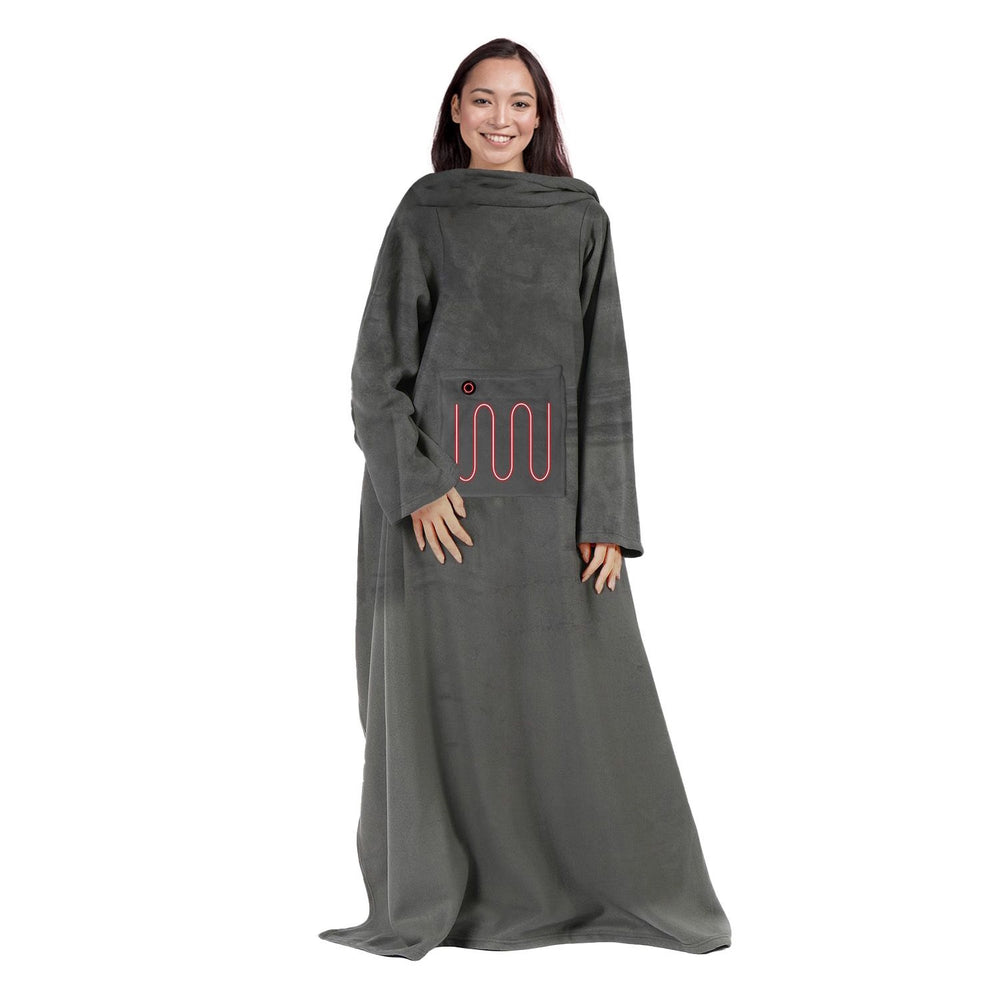 Heizdecke mit Ärmeln - Beheizbare Kuscheldecke in Grau