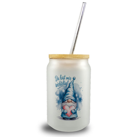 Du bist mir wichtelig! Wichtel Trinkglas mit Bambusdeckel