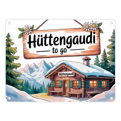 Almhütte Hüttengaudi to go Metallschild in 15x20 cm