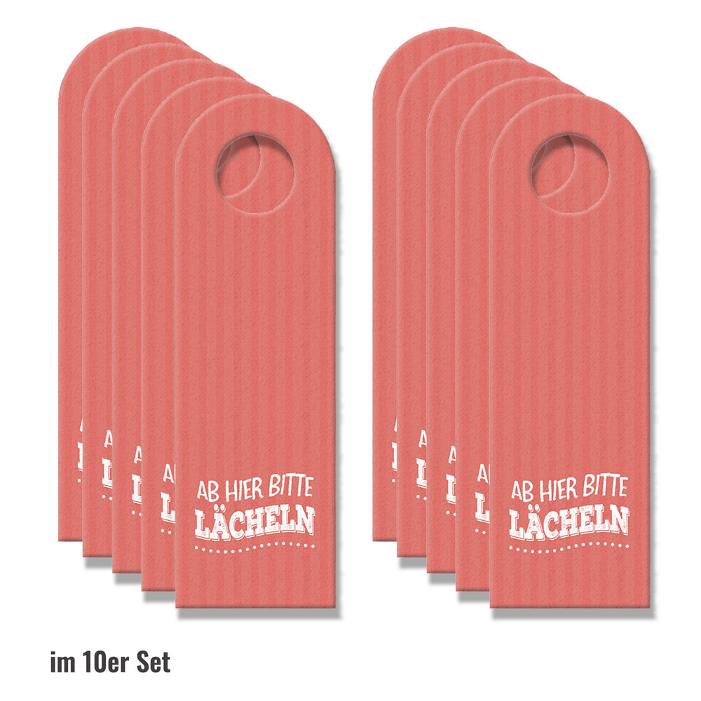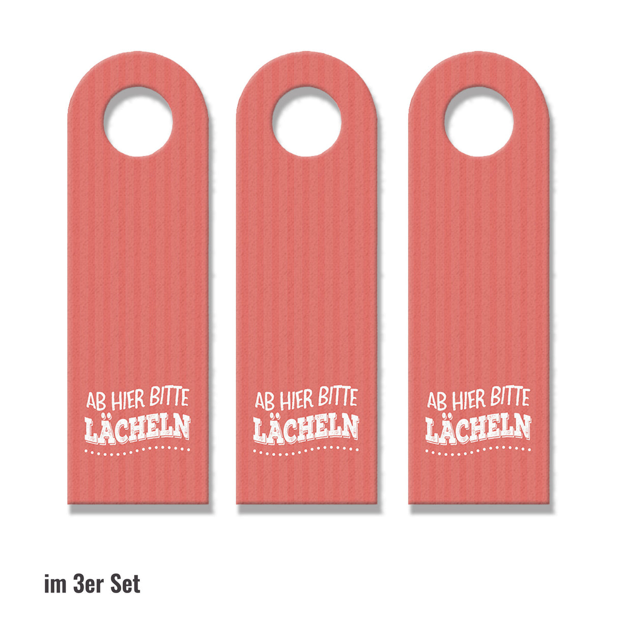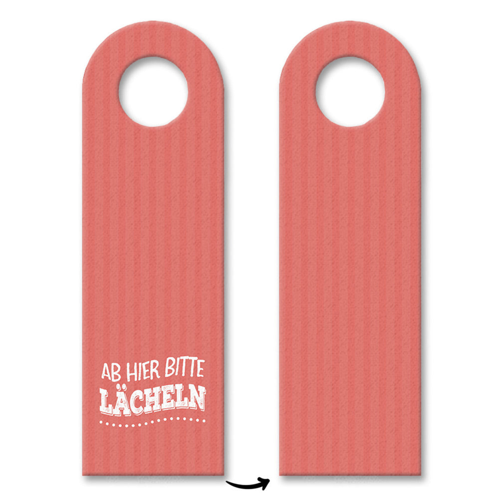 - 1x Ab hier bitte lächeln Türhänger in der gewählten Setgröße