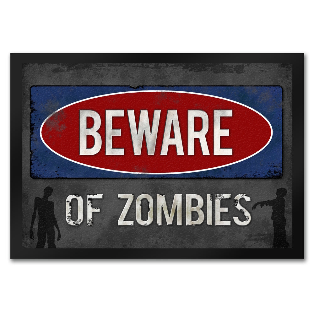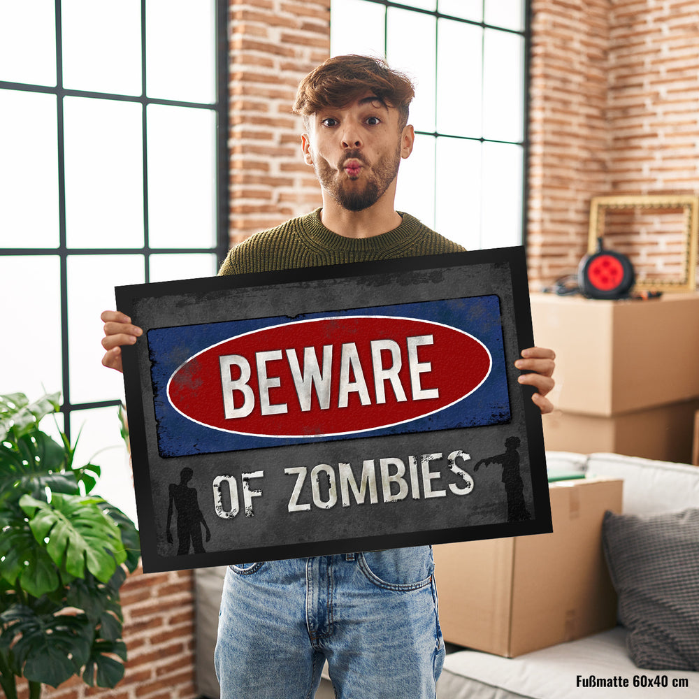 - 1x Beware of Zombies Fußmatte Warnung Zombie Halloween Untoter Apocalypse Angst Wohnung Haustür in der gewählten Größe