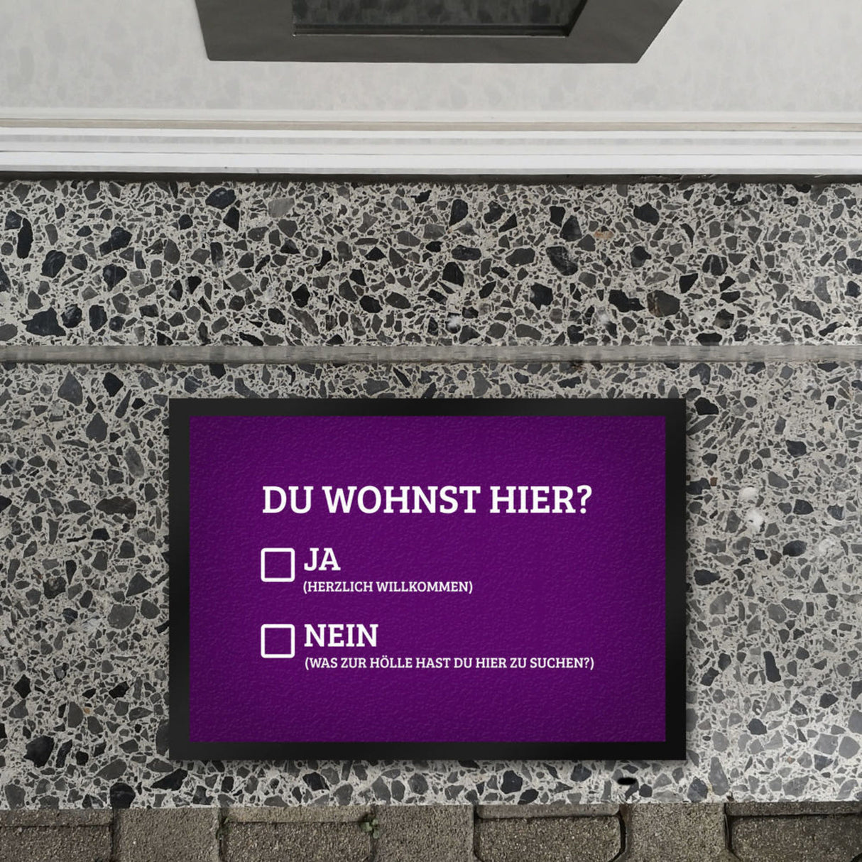 - 1x Du wohnst hier Fußmatte Willkommen Zuhause wohnen Haustüre Wohnungstüre in der gewählten Größe