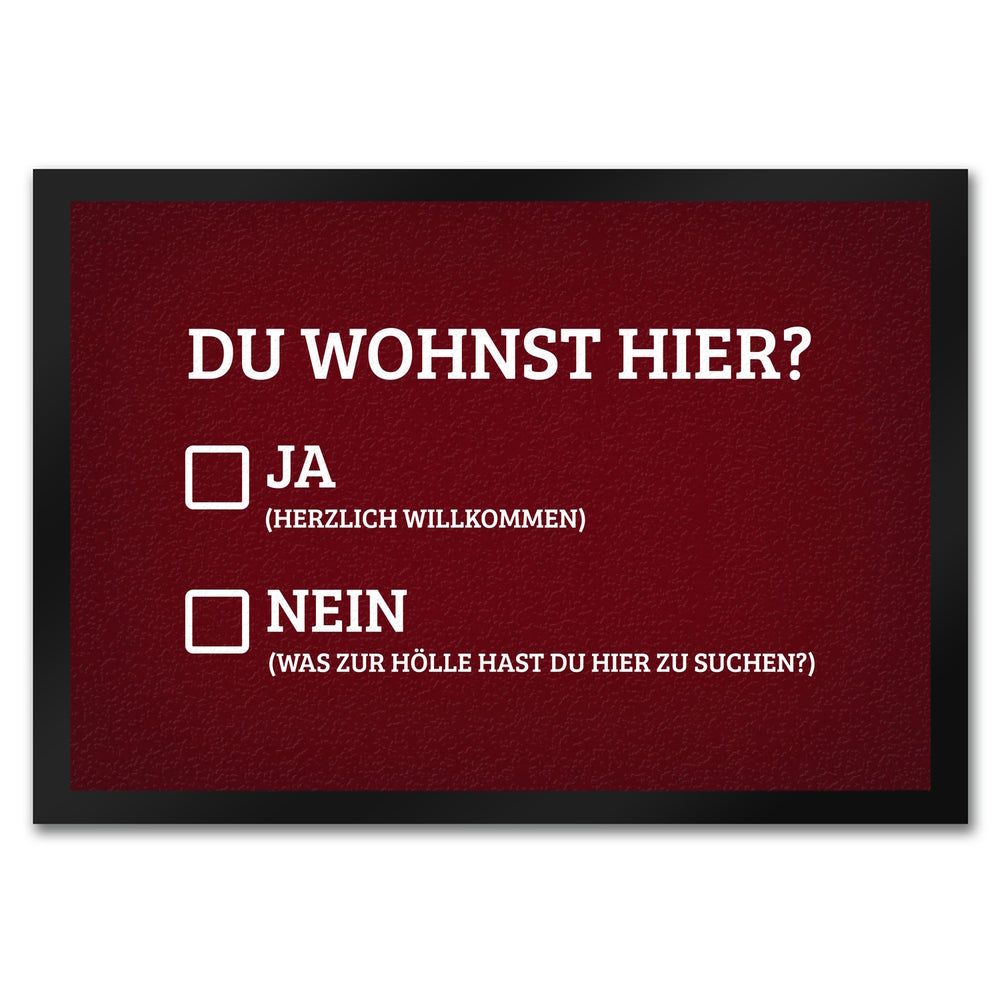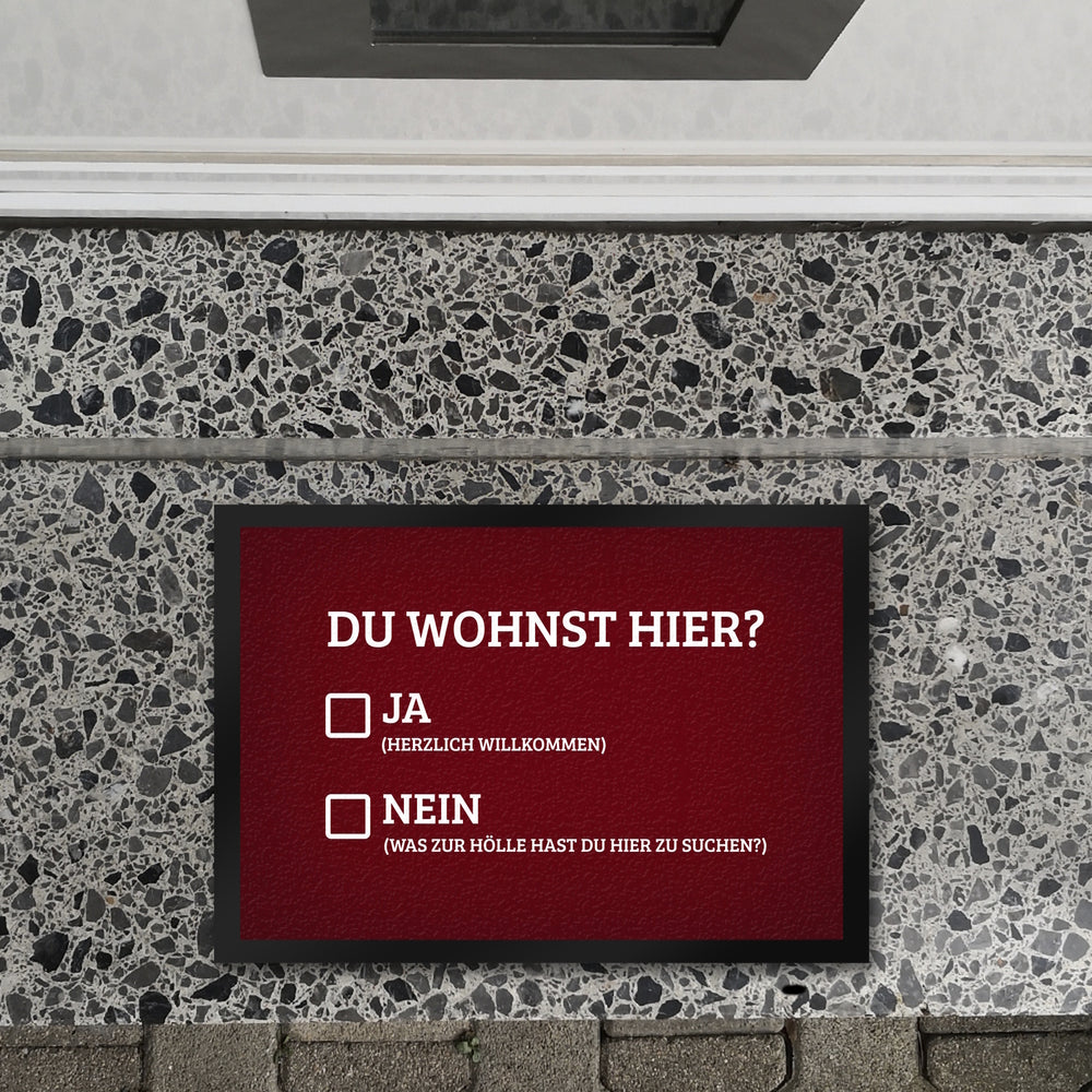Du wohnst hier Fußmatte Willkommen Zuhause wohnen Haustüre Wohnungstüre - 50x35 cm / Rot ist auf Lager und wird versandt, sobald es wieder verfügbar ist