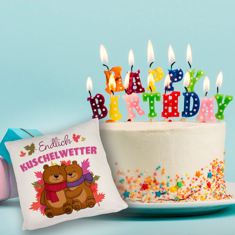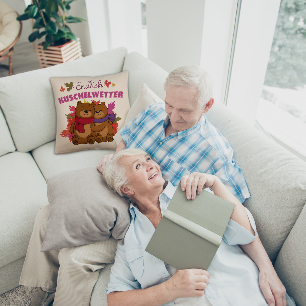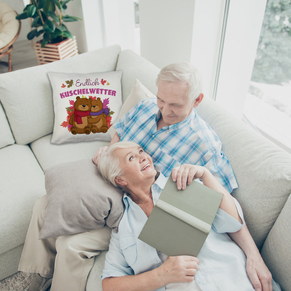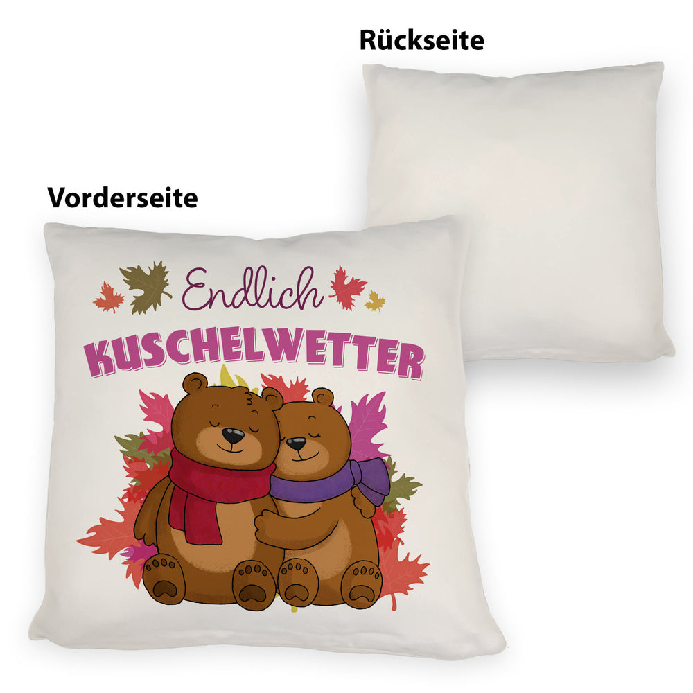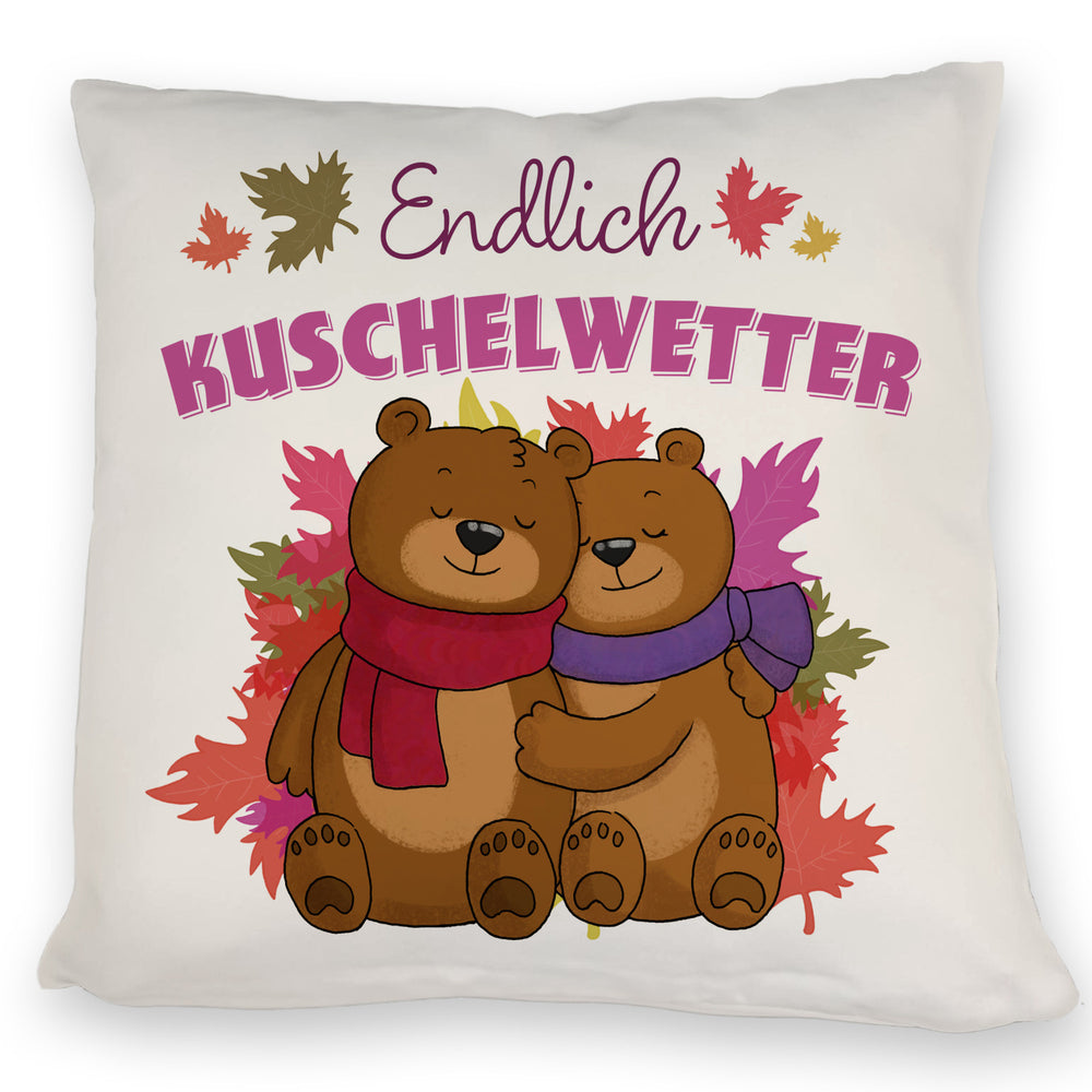 • 1x Endlich Kuschelwetter herbstliches Kissen mit Bärenpaar in der gewählten Ausführung