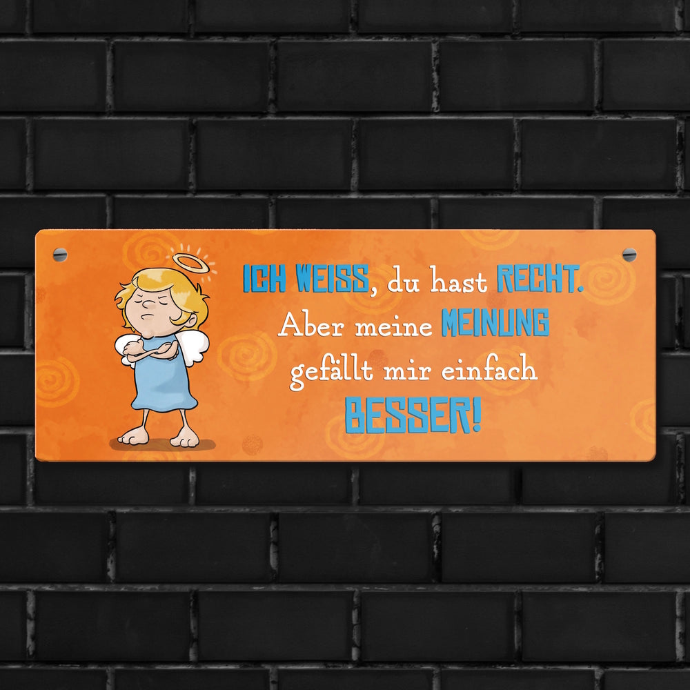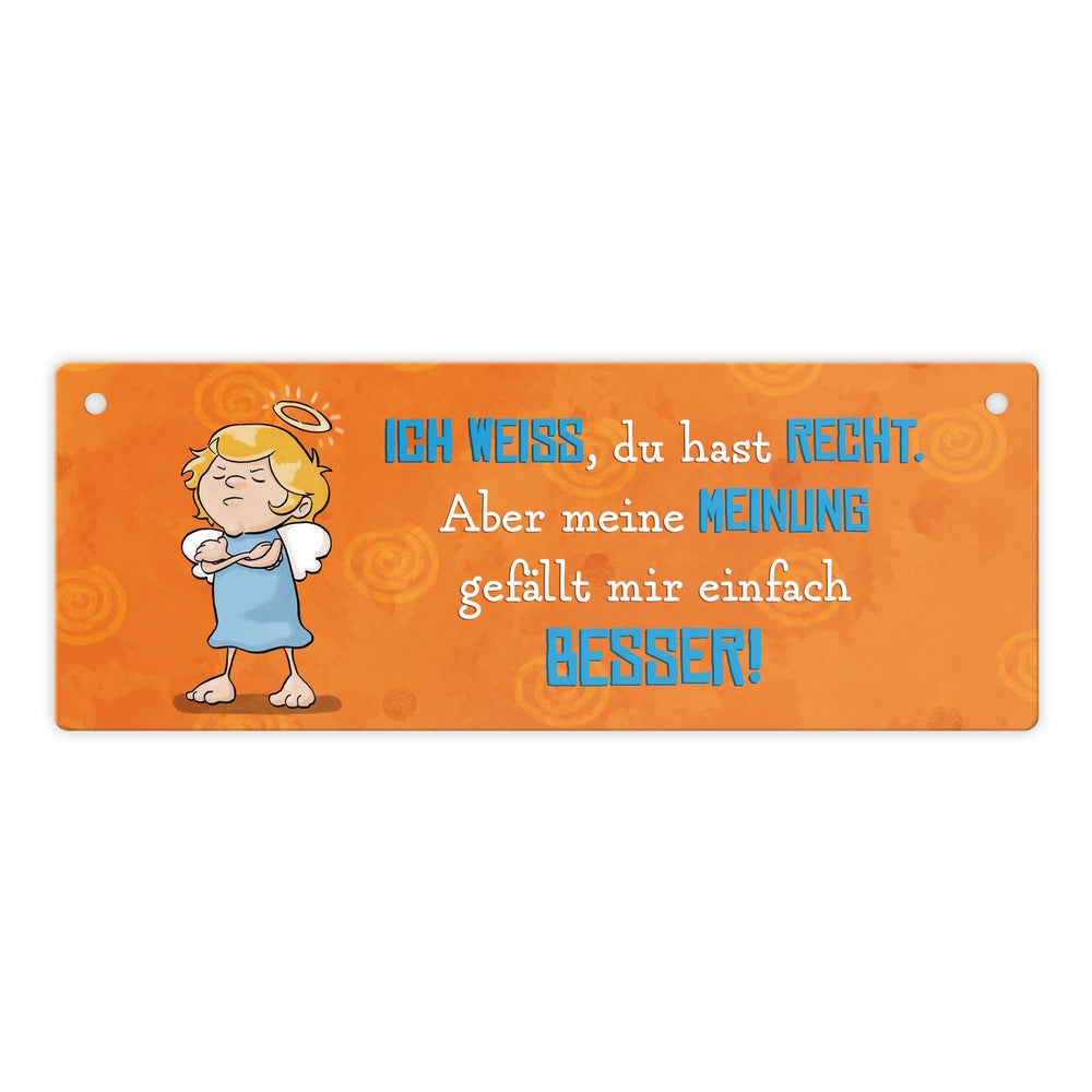 • 1x Engel Metallschild mit Spruch - Du hast Recht aber meine Meinung ist besser in der gewählten Größe
