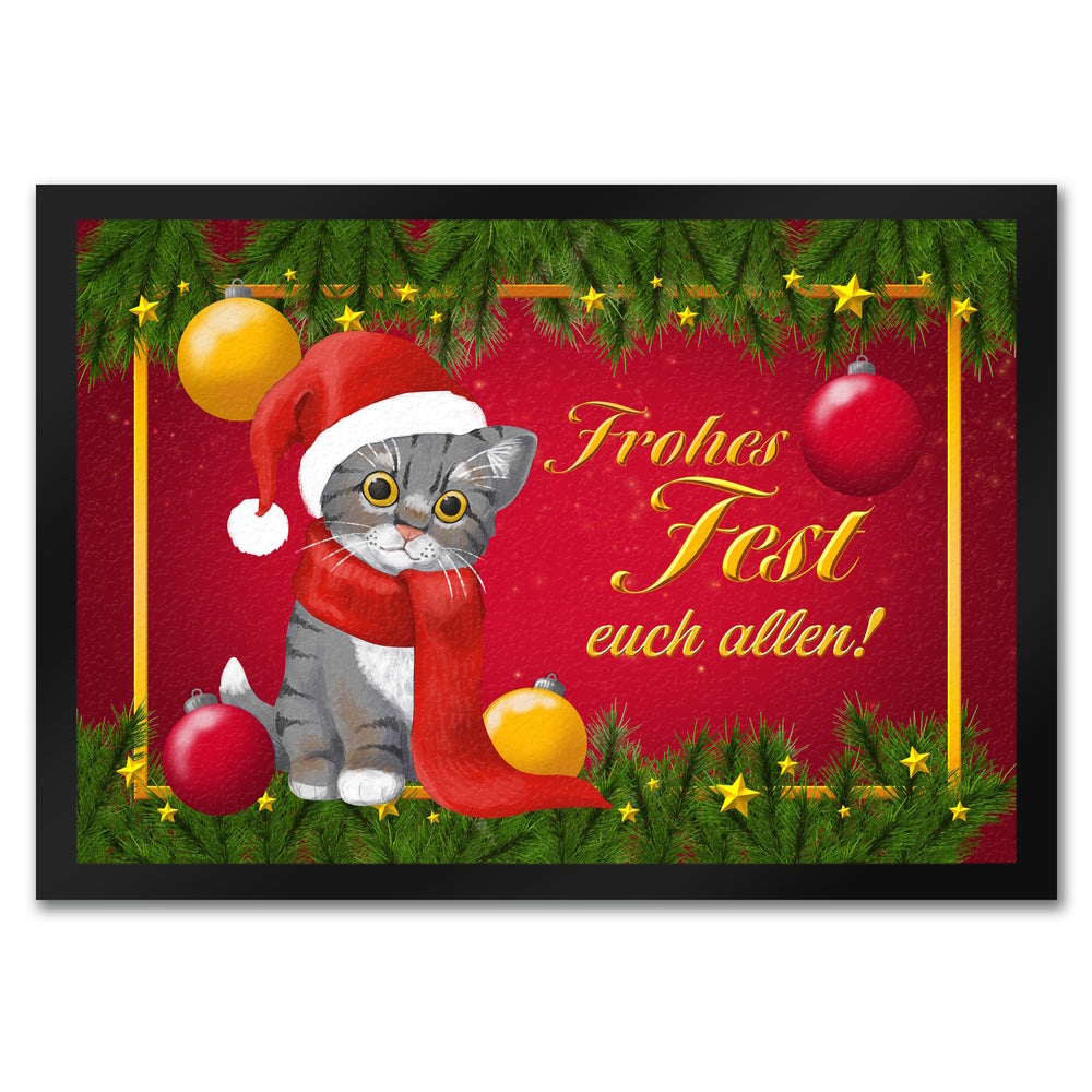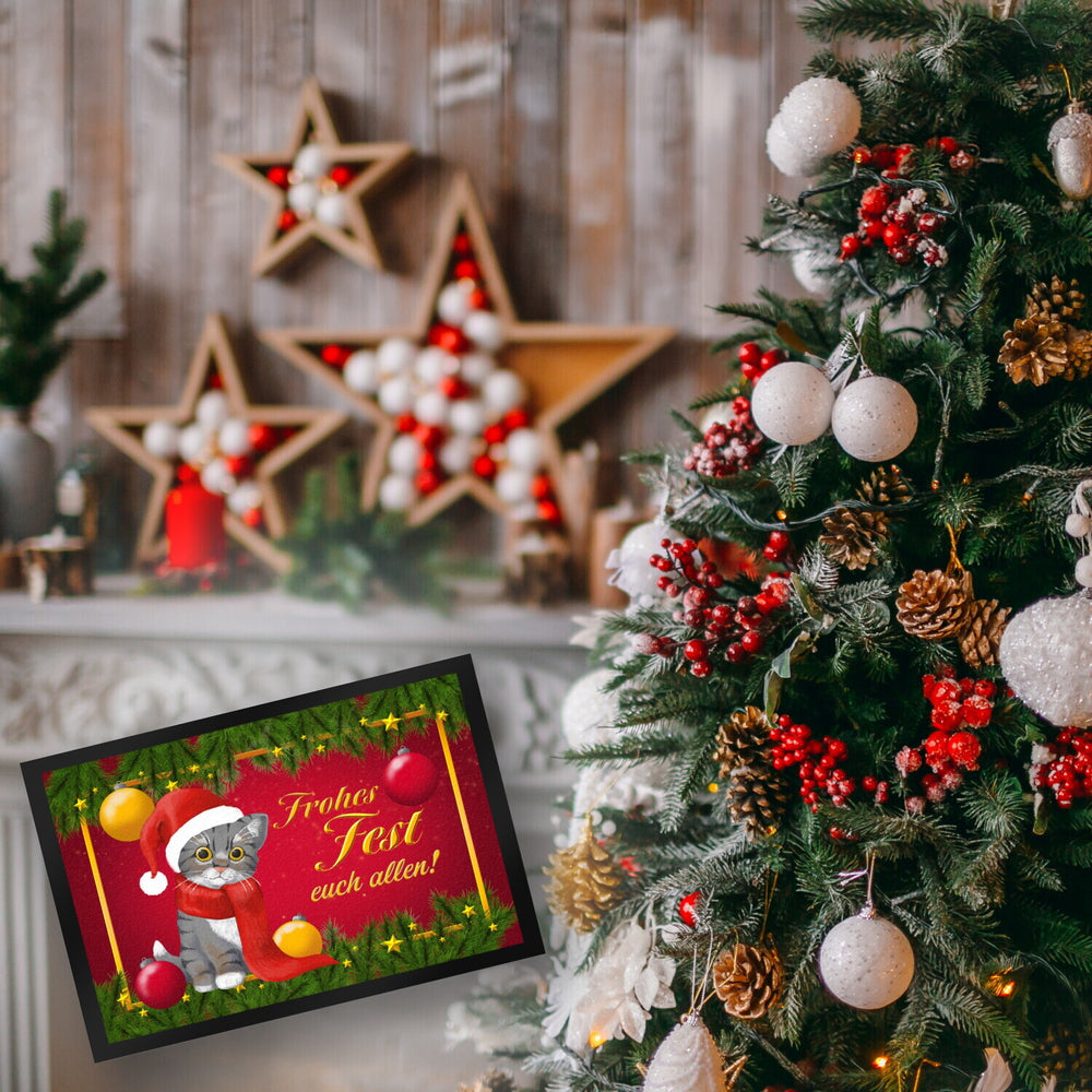 - 1x Frohes Fest Katze Fußmatte zu Weihnachten in der gewählten Größe
