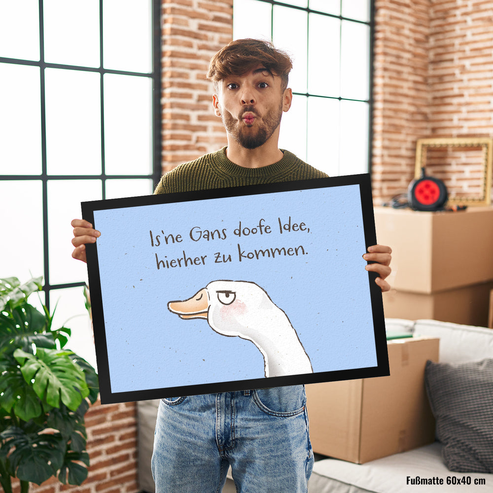 Gilbert die Gans Fußmatte in 35x50 cm mit Spruch Is ne Gans doofe Idee hierher zu kommen