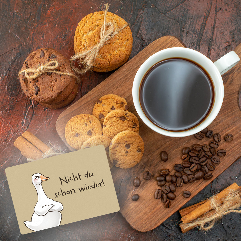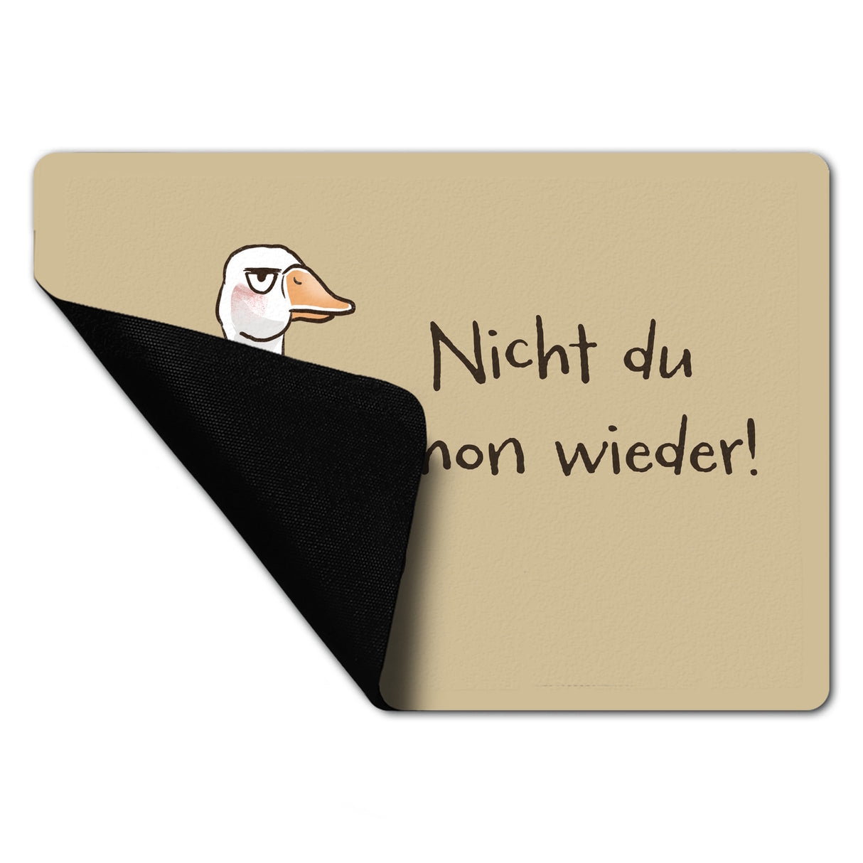 - Gilbert die Gans, der grantelnde Empfangschef für dein Heim! Diese Fußmatte schmückt deinen Eingang mit einem tierisch miesepetrigen Gans-Motiv und dem charmant schnoddrigen Spruch "Nicht du schon wieder!". Ein echtes Statement gegen unerwünschten Besuch - und das mit einem Augenzwinkern!