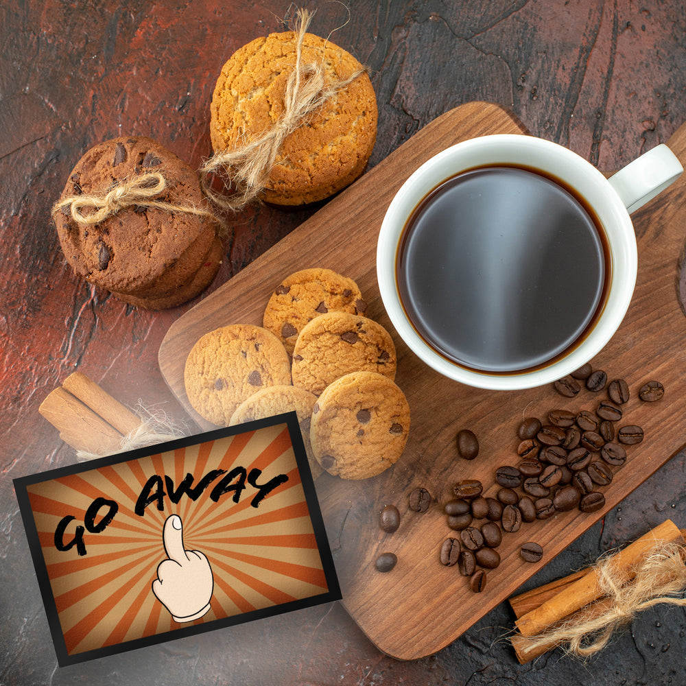 - 1x Go away Fußmatte mit Mittelfinger Motiv in der gewählten Größe