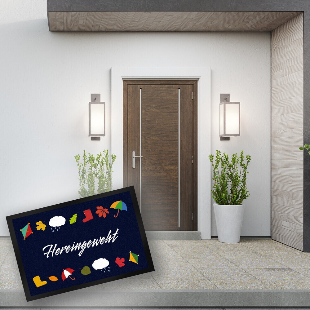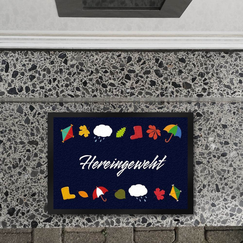 - Der Herbst steht vor der Tür und du möchtest ihn und deinen Besuch auf herbstliche Art begrüßen? Dann wird dir diese Fußmatte sicher gefallen. Die Fußmatte zeigt, dass das stürmische Wetter nicht nur das Laub durch die Gegend weht, sondern auch deinen Besuch zu dir ins Haus.