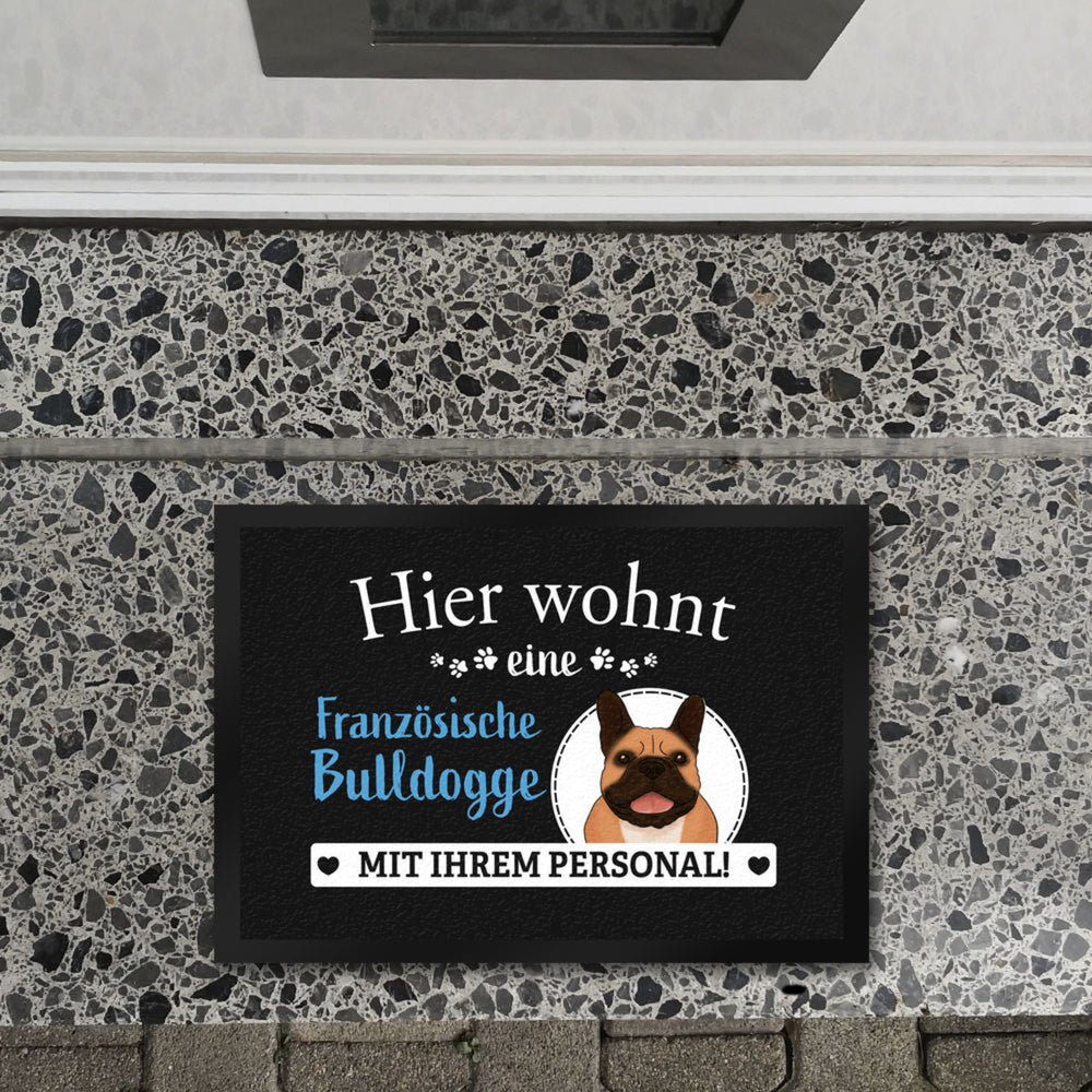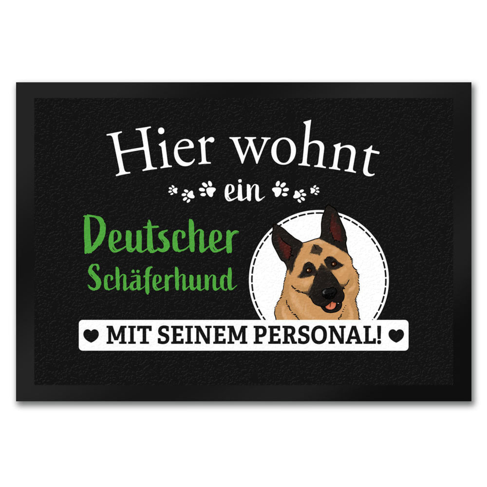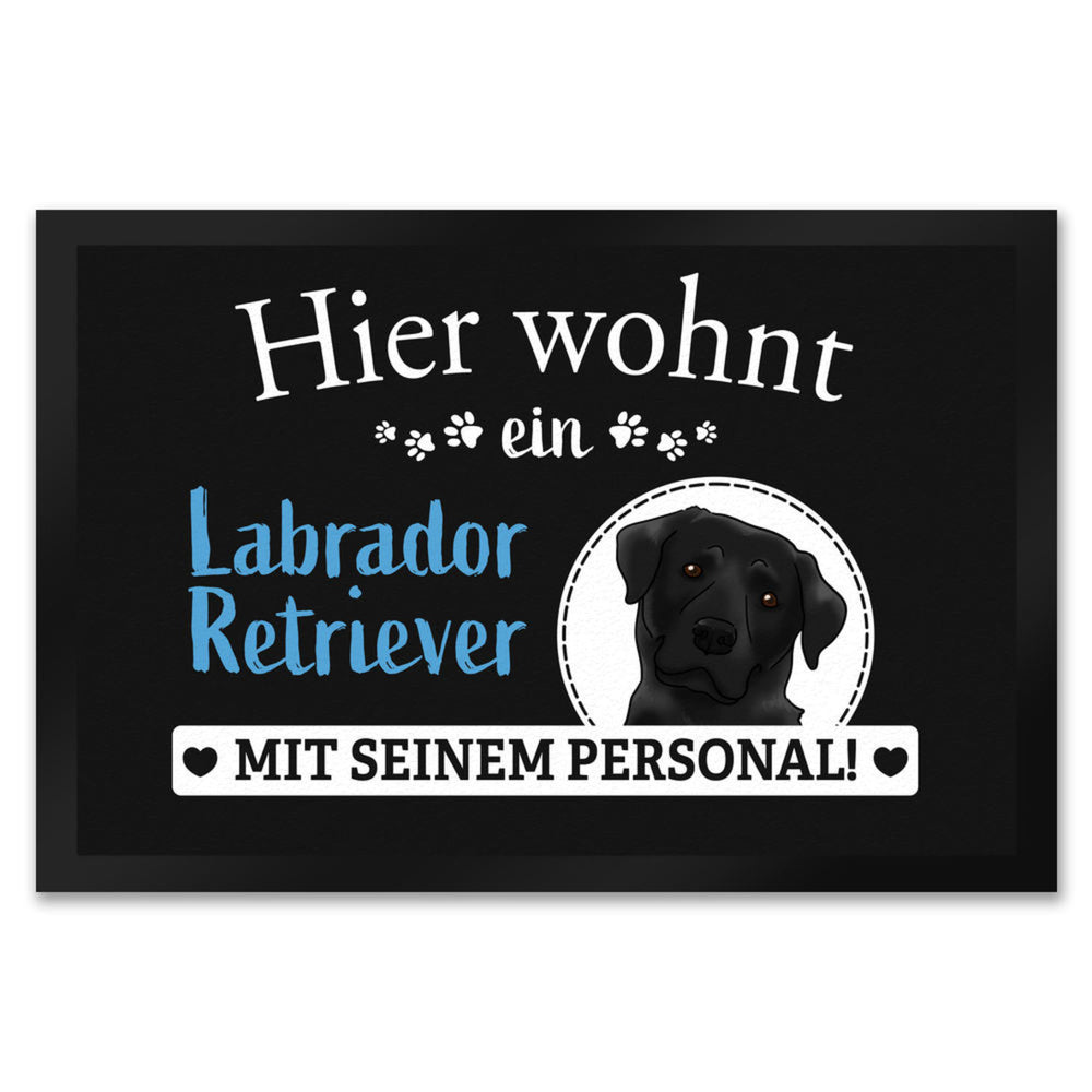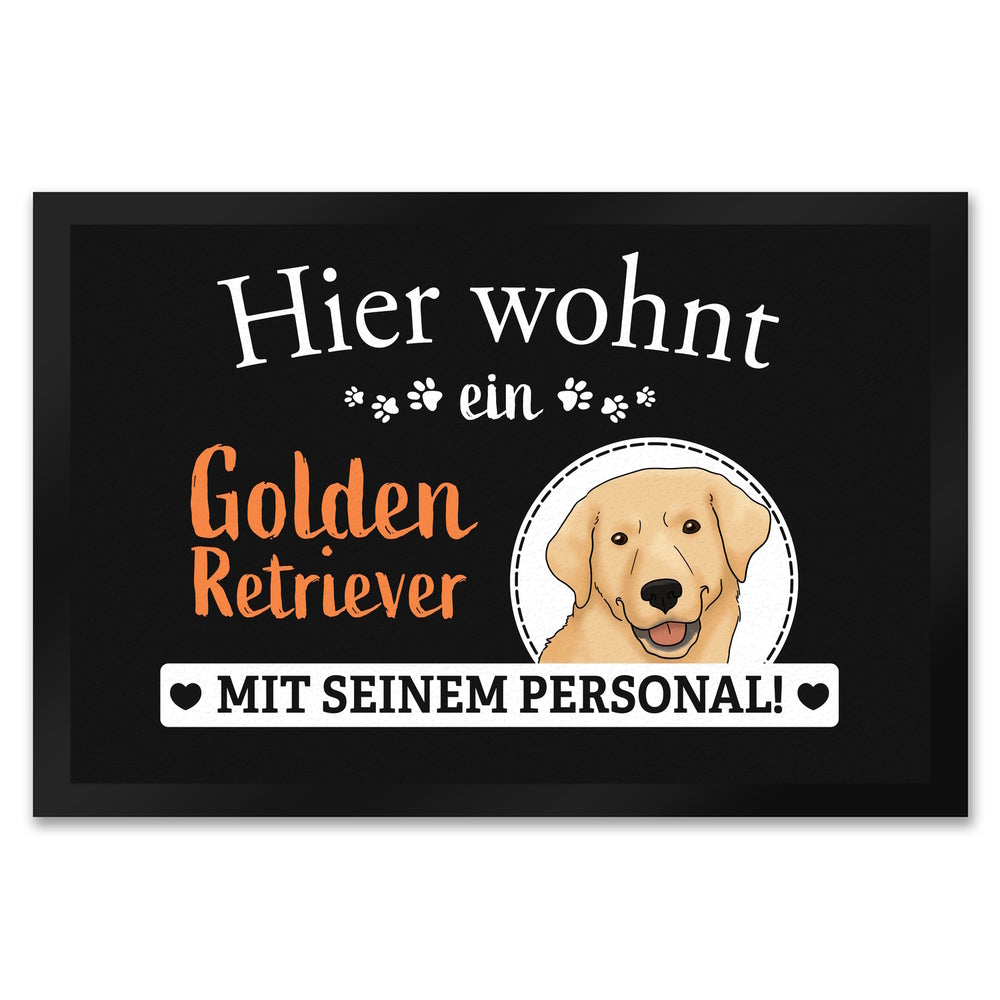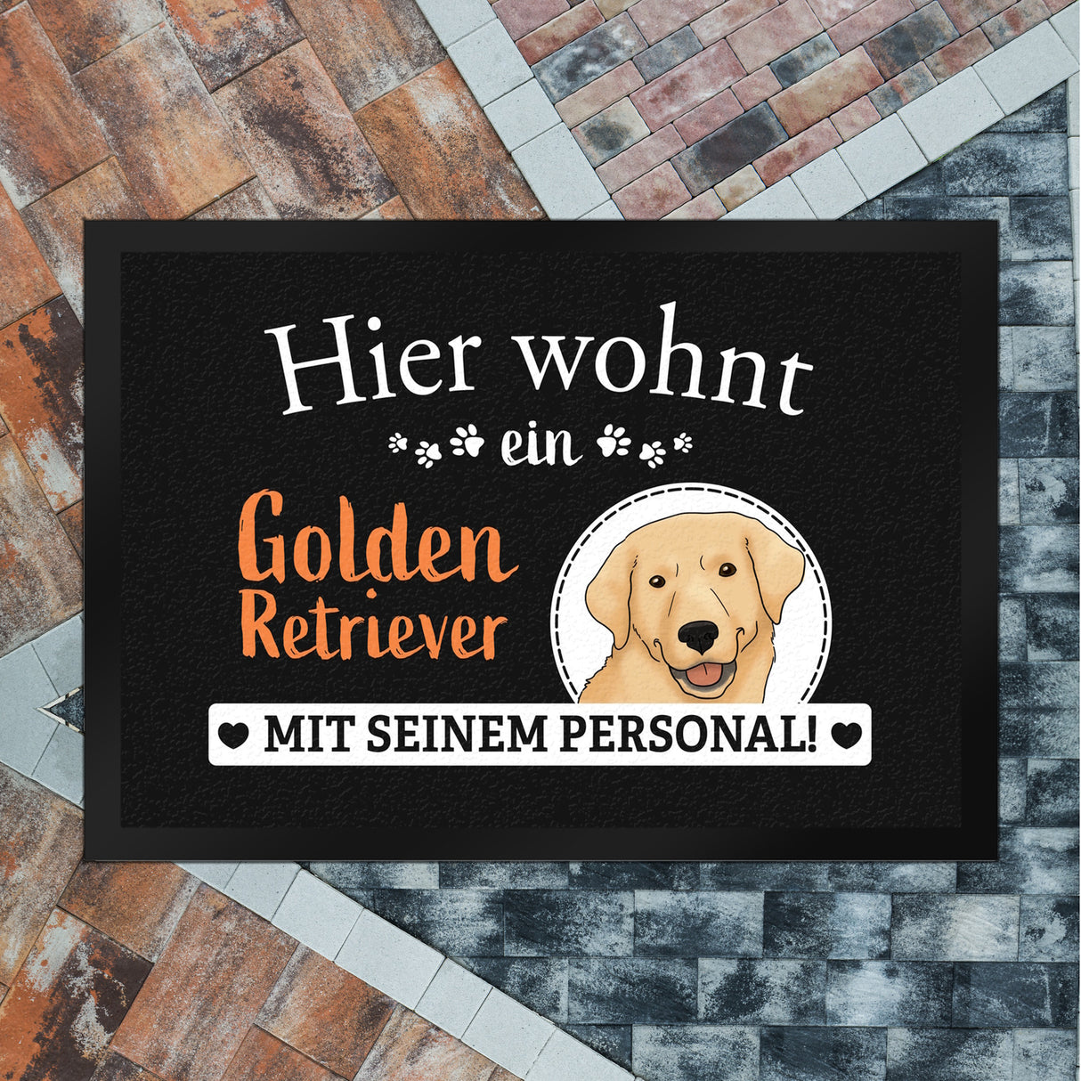 - 1x Hier wohnt ein Golden Retriever mit seinem Personal Fußmatte in der gewählten Größe