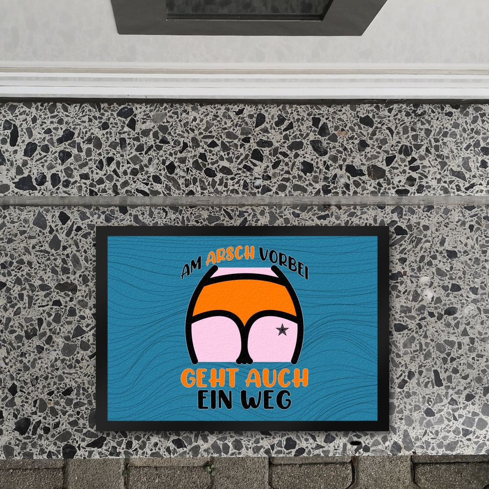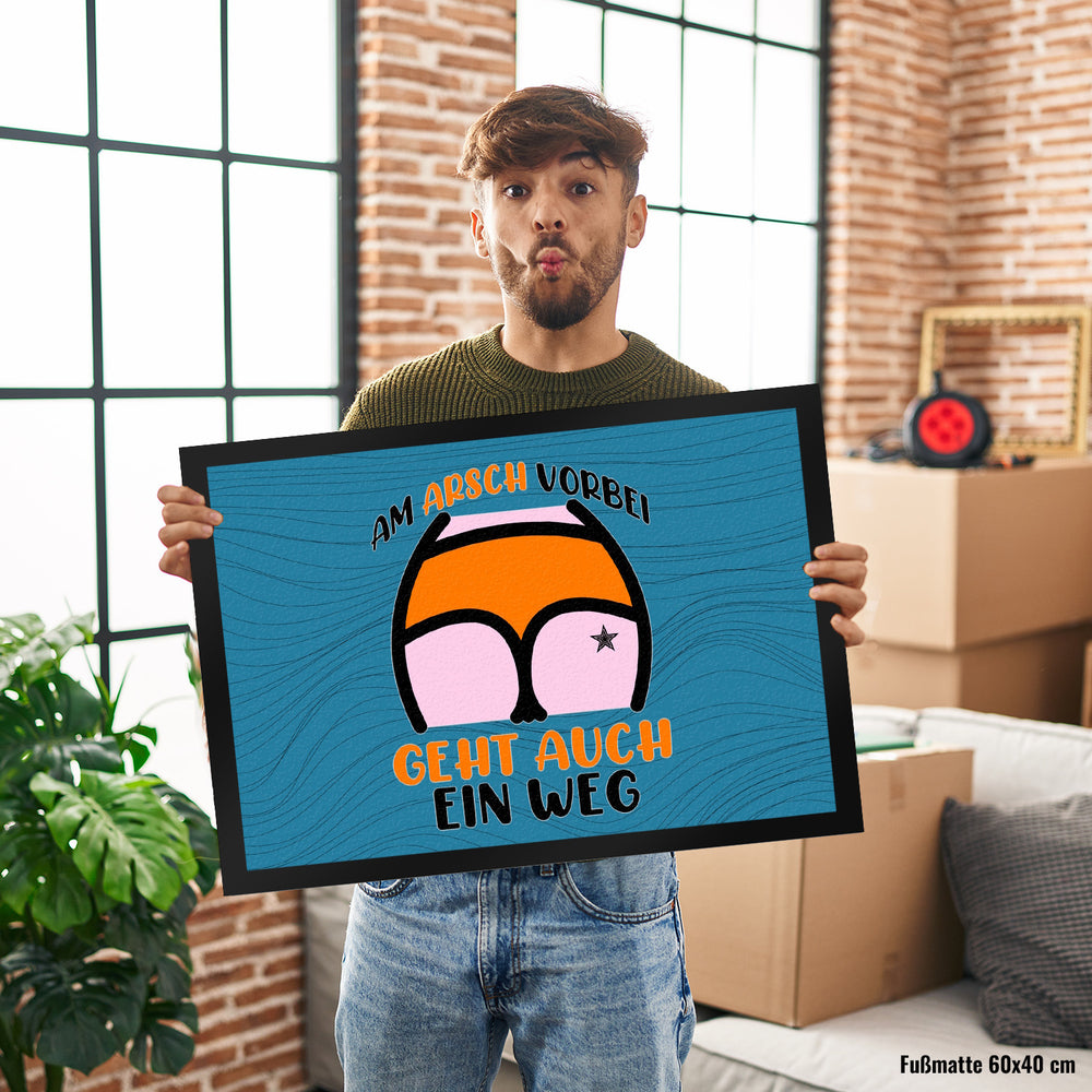 - Diese lässige Fußmatte mit Arsch Motiv ist ein toller Begleiter für Deine Freunde zum Geburtstag oder Einzug in eine neue Wohnung. Mit dem lustigen Spruch "Am Arsch vorbei geht auch ein Weg" wird jeder Besucher mit Deiner lockeren Art empfangen! Eine ideale Geschenkidee, um Herzlichkeit in Deine Behausung zu bringen. Sie ist auch perfekt als Fußabstreifer geeignet, sodass Du schmutzige Straßenschuhe nicht mehr im Hausflur ablegen musst.