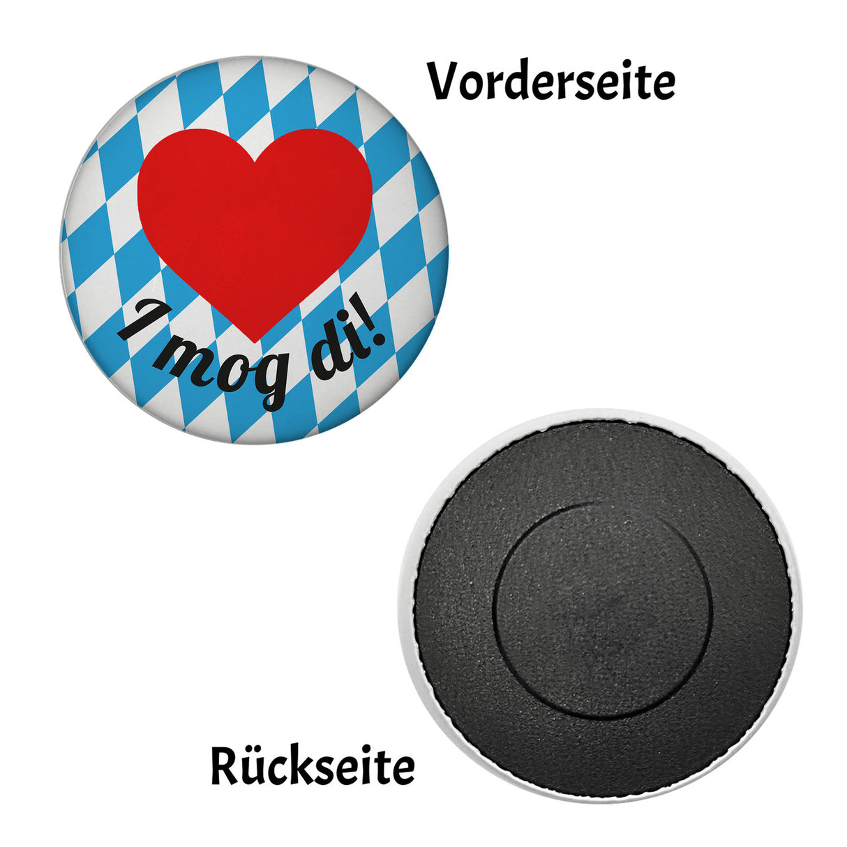 - 1x I mog di Magnet rund mit bayerischer Flagge und Herz in der gewählten Ausführung
