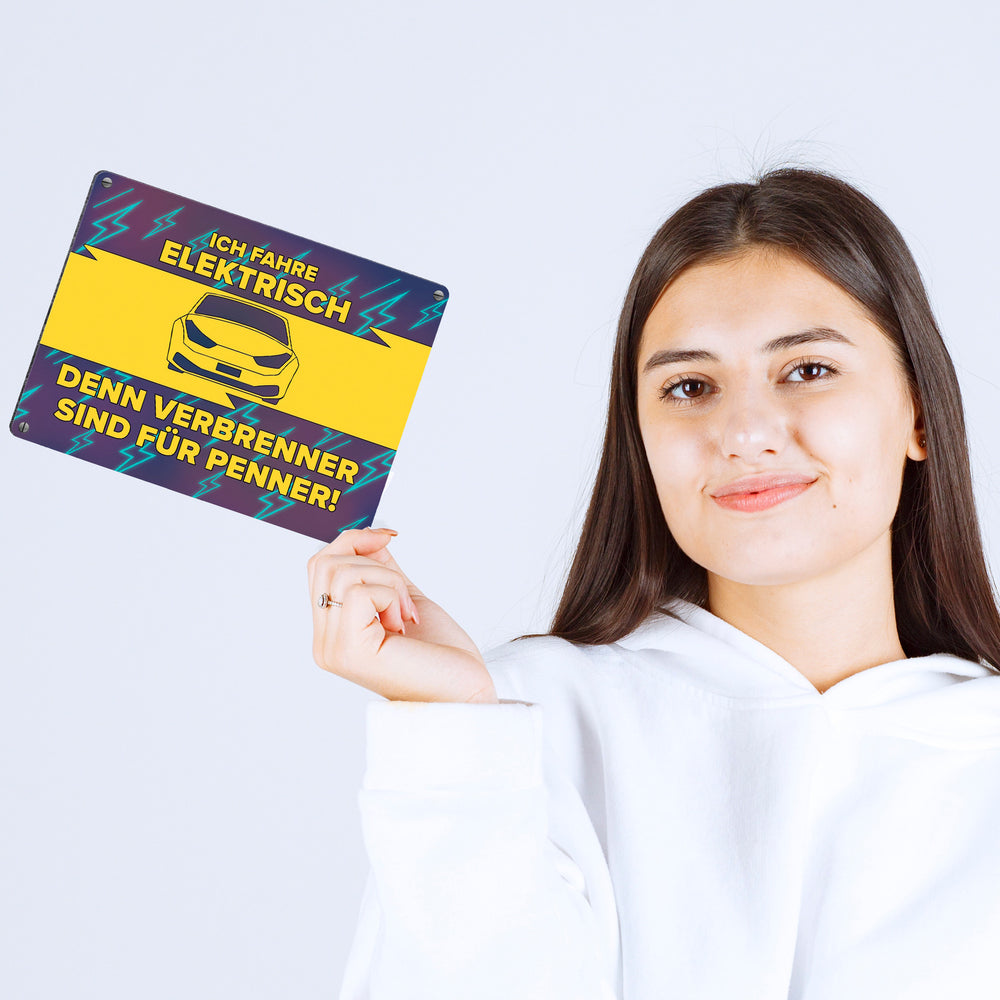- 1x Ich fahre elektrisch, denn Verbrenner sind für Penner Metallschild in der gewählten Größe