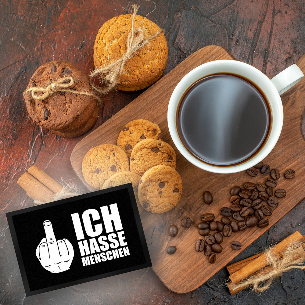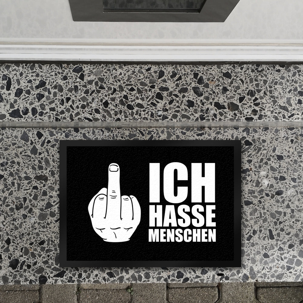 • 1x Ich hasse Menschen Fußmatte mit Mittelfinger Motiv in der gewählten Größe