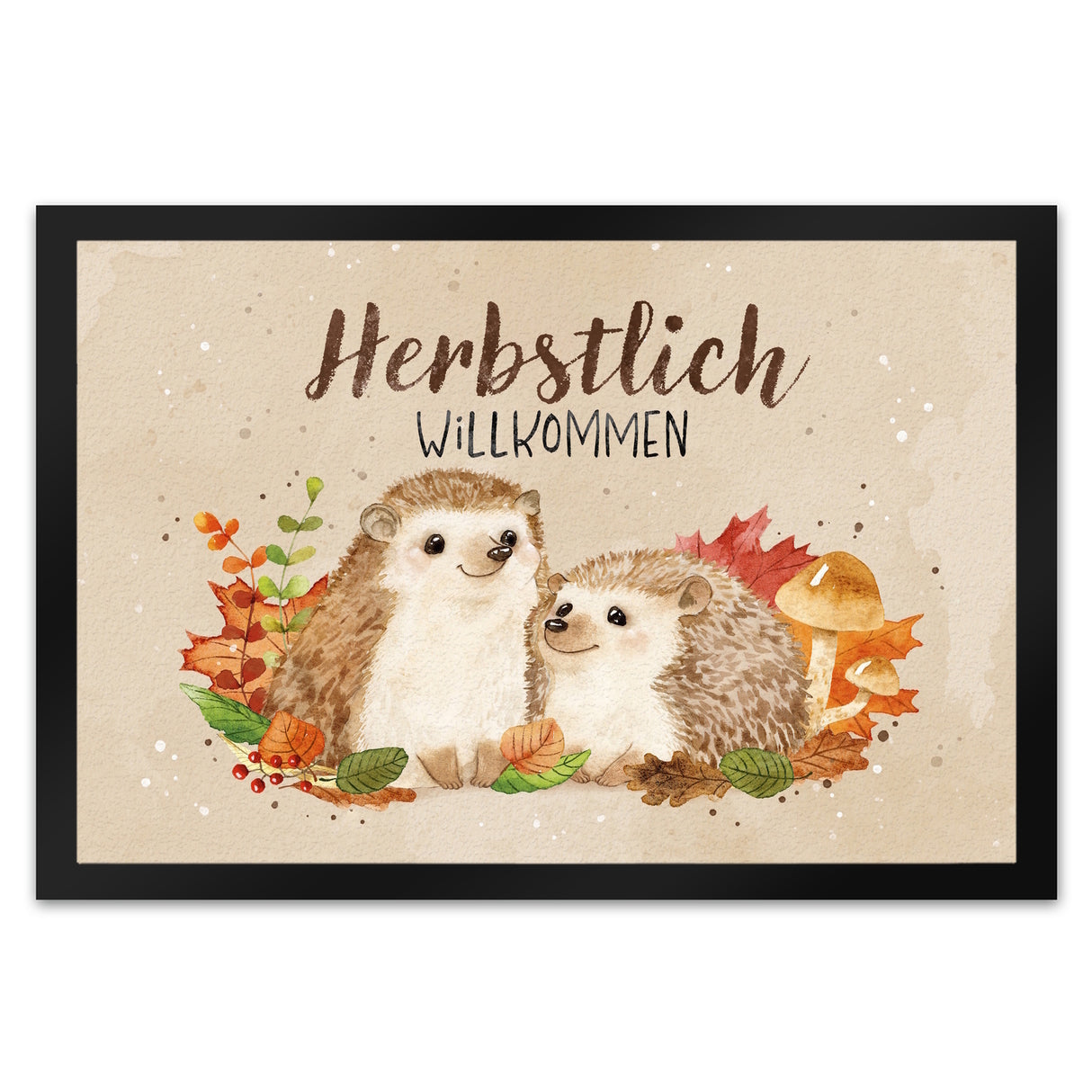 - Unsere Fußmatte ist ein wahrer Hingucker für jedes Zuhause. Mit einem niedlichen Igelpärchen im Laubhaufen als Aquarell-Zeichnung bringt sie herbstlichen Charme in Ihre Wohnung. Fußmatten sind nicht nur ein herzliches Willkommen an der Haustür, sondern halten auch Ihre Räume sauber.