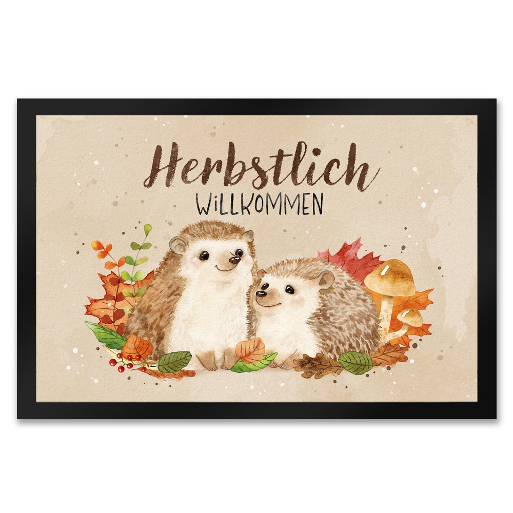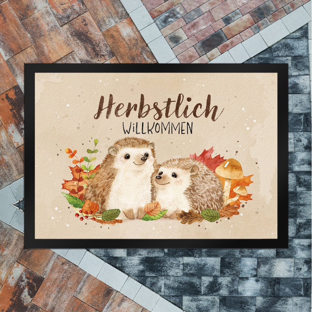 Igel Paar Fußmatte in 35x50 cm mit Spruch Herbstlich Willkommen