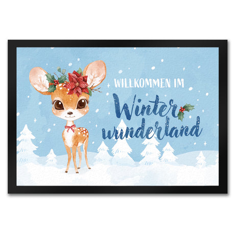 Rehkitz Fußmatte in 35x50 cm mit Spruch Willkommen im Winterwunderland