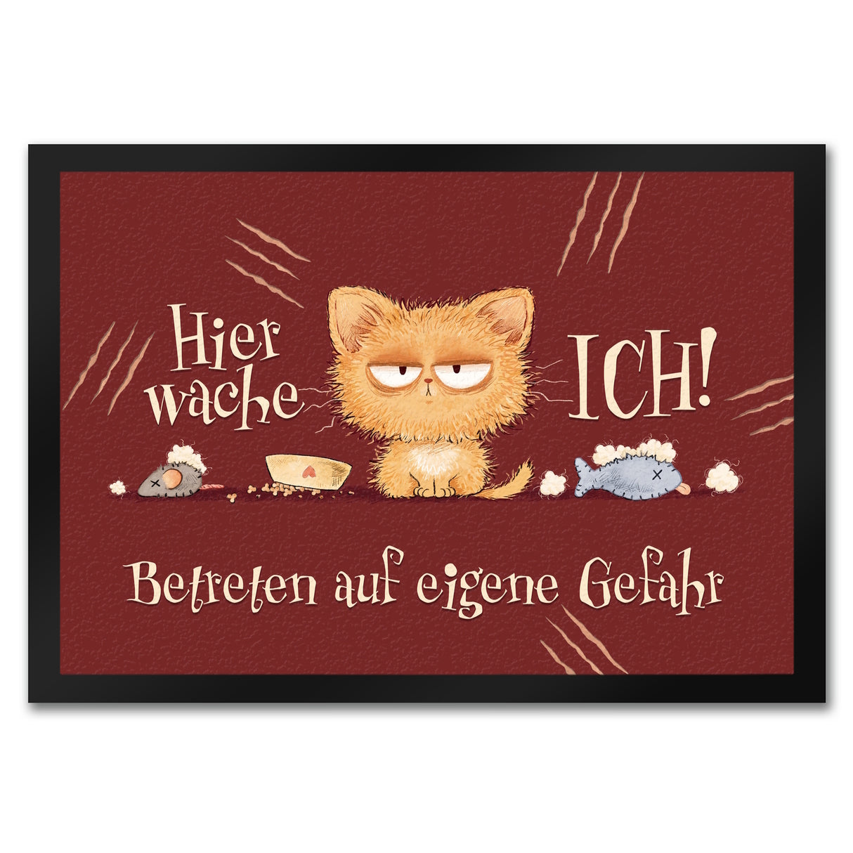 Katze Fußmatte in 35x50 cm mit Spruch Hier wache ich Eigene Gefahr