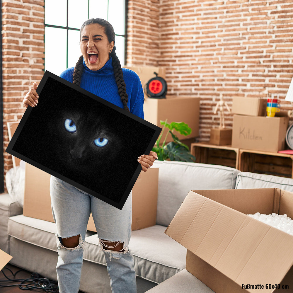 • 1x Katzenaugen Fußmatte Katze Kater Auge Haustüre Wohnungstüre Böse Zuhause in der gewählten Größe