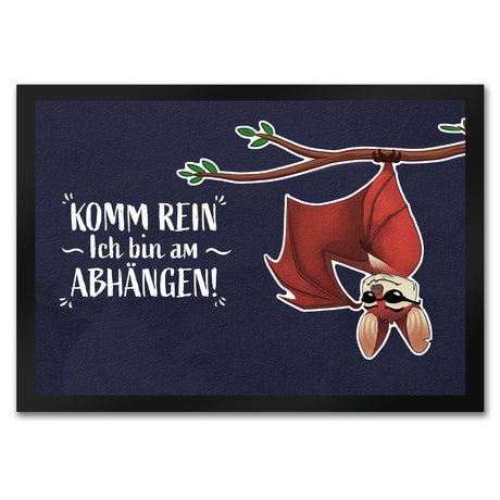 Komm rein ich bin am abhängen Fußmatte mit lustiger Fledermaus