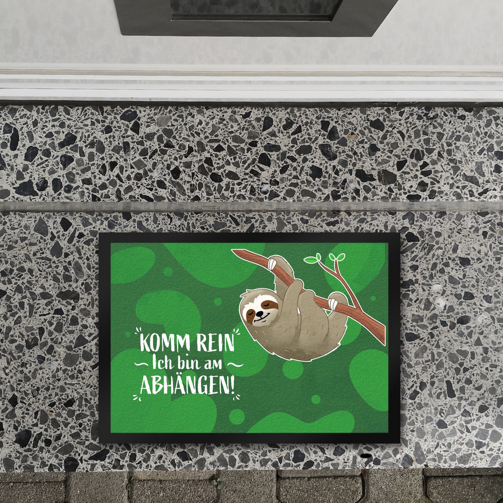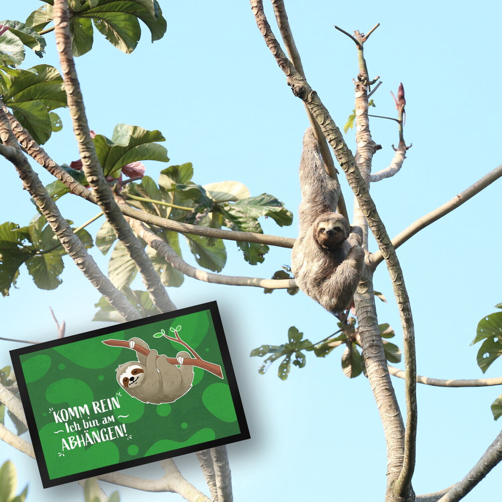- 1x Komm rein ich bin am Abhängen Fußmatte mit süßem Faultier in der gewählten Größe