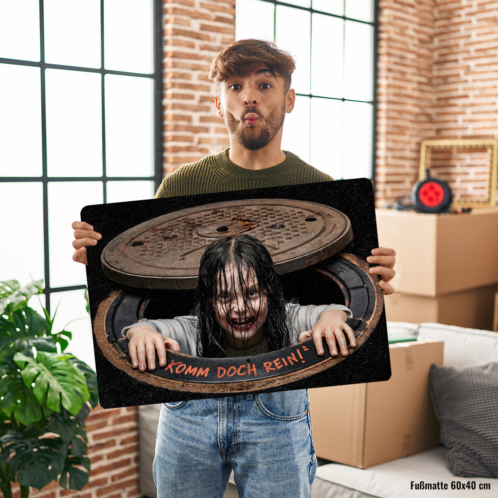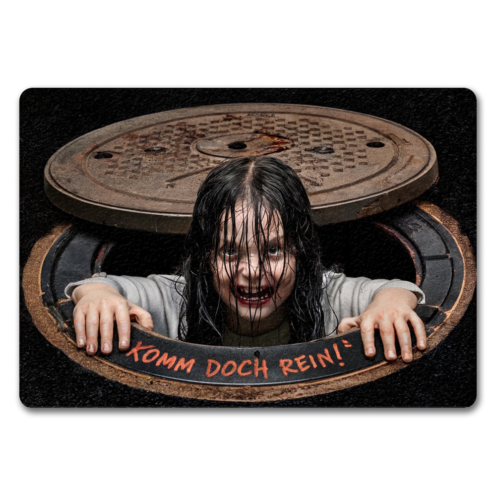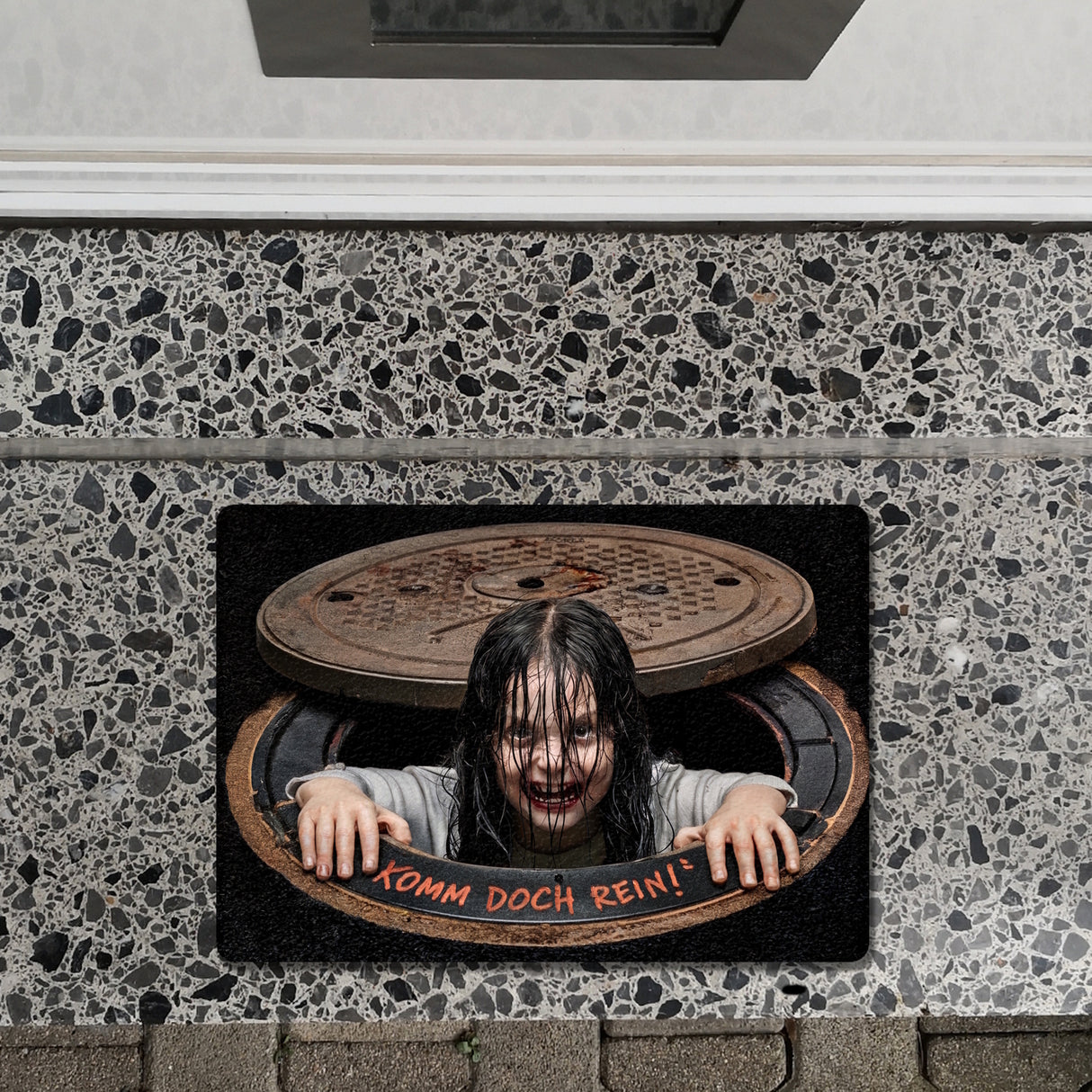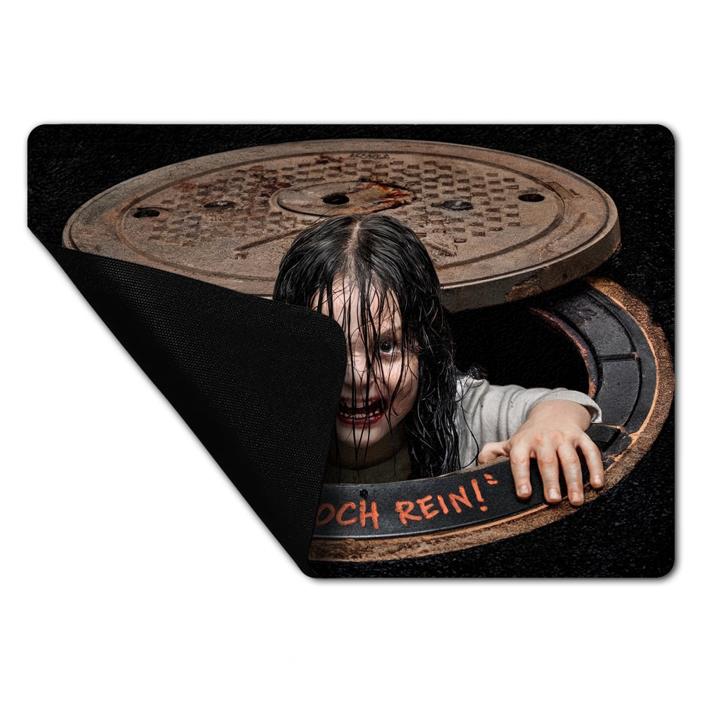 - Willkommen, Mutige und Tapfere! Unsere Mädchen unter dem Kanaldeckel Fußmatte ist das ultimative Horror-Accessoire für Halloween. Mit einem bösen Mädchen, das aus dem Kanaldeckel schaut, wird dieser gruselige Willkommensgruß deine Gäste erschrecken.