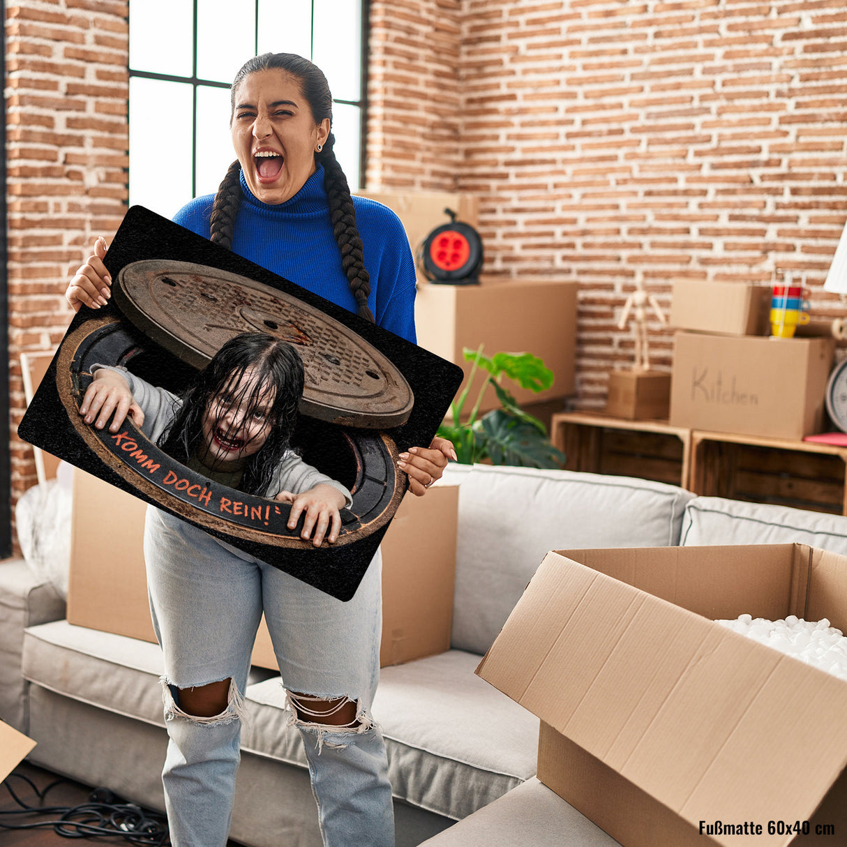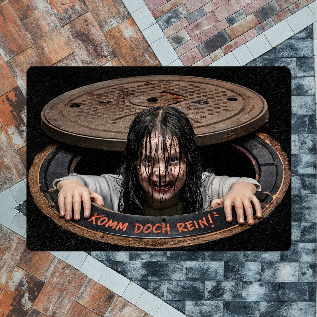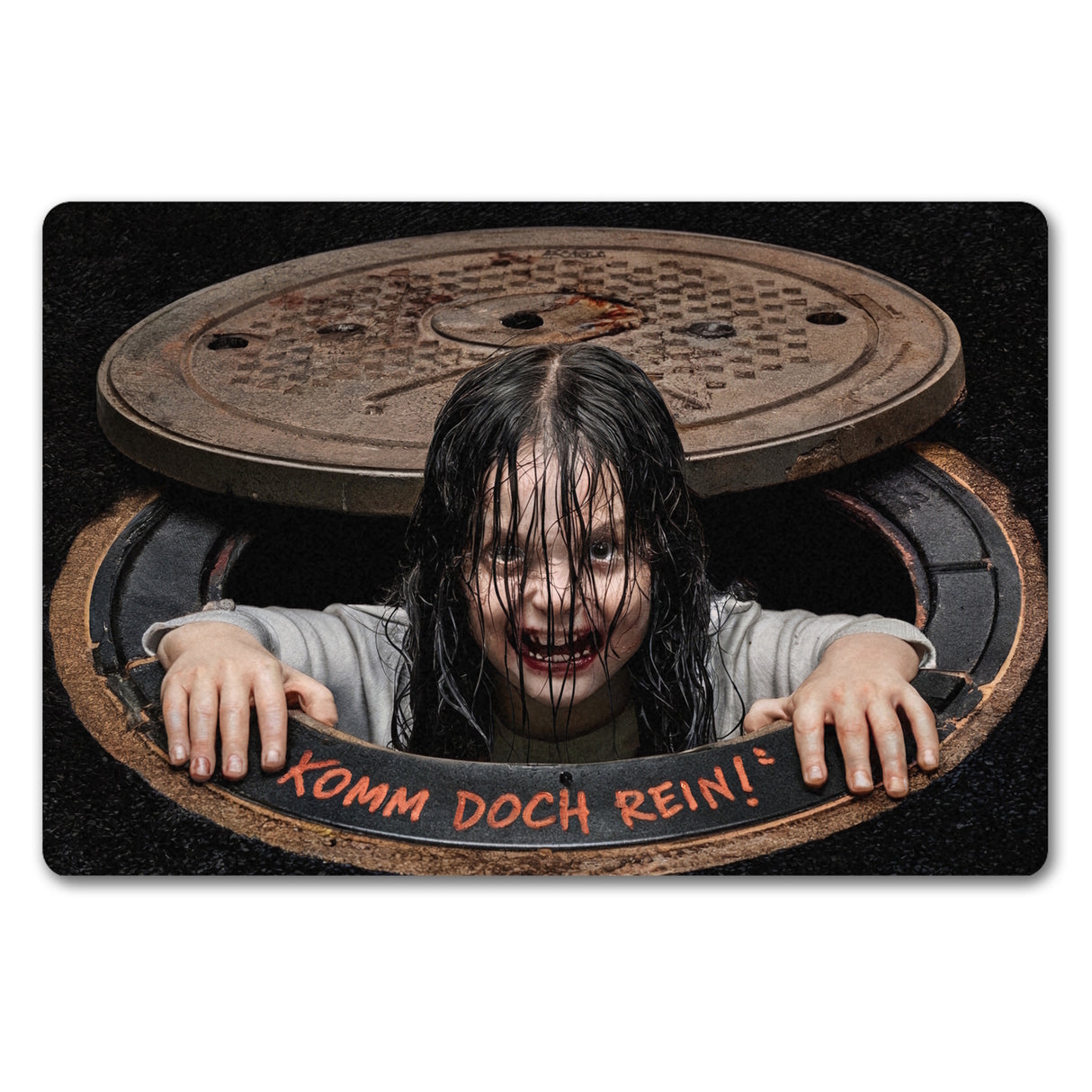 - Willkommen, Mutige und Tapfere! Unsere Mädchen unter dem Kanaldeckel Fußmatte ist das ultimative Horror-Accessoire für Halloween. Mit einem bösen Mädchen, das aus dem Kanaldeckel schaut, wird dieser gruselige Willkommensgruß deine Gäste erschrecken.