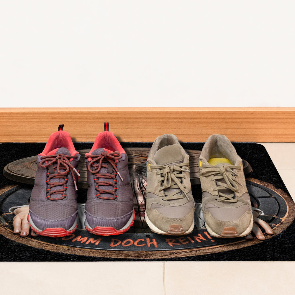 - Ideal als Halloween-Deko oder als Geschenk für Horror-Fans. Diese Fußmatte verwandelt deinen Eingang in eine Schauergeschichte. Traust du dich, deine Gäste so zu begrüßen? Schenke dem Horror ein Zuhause – Komm doch rein!