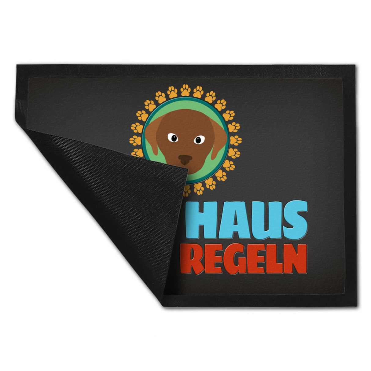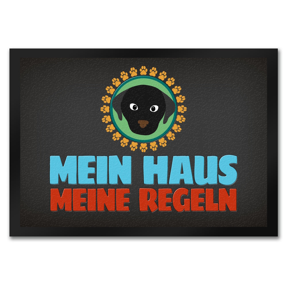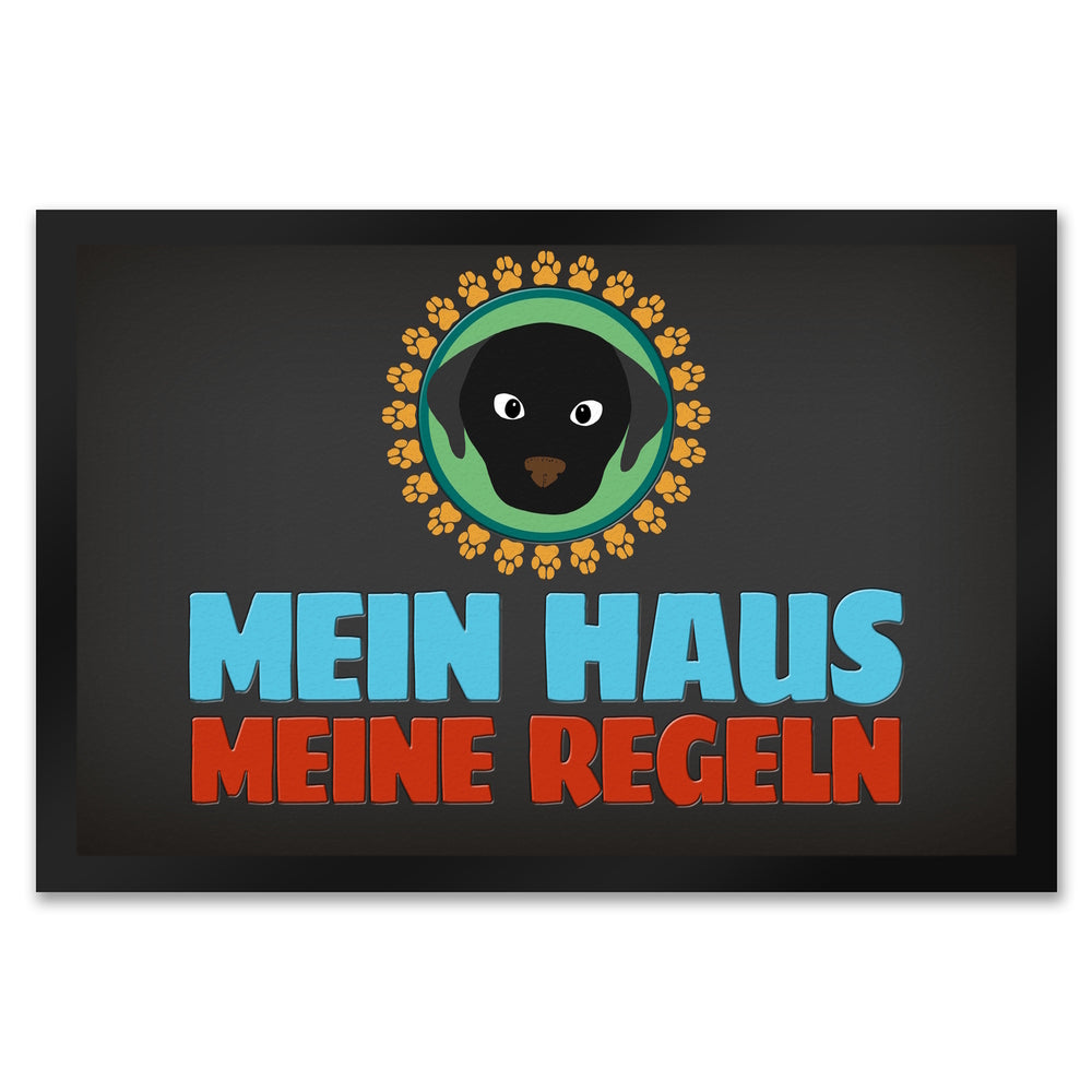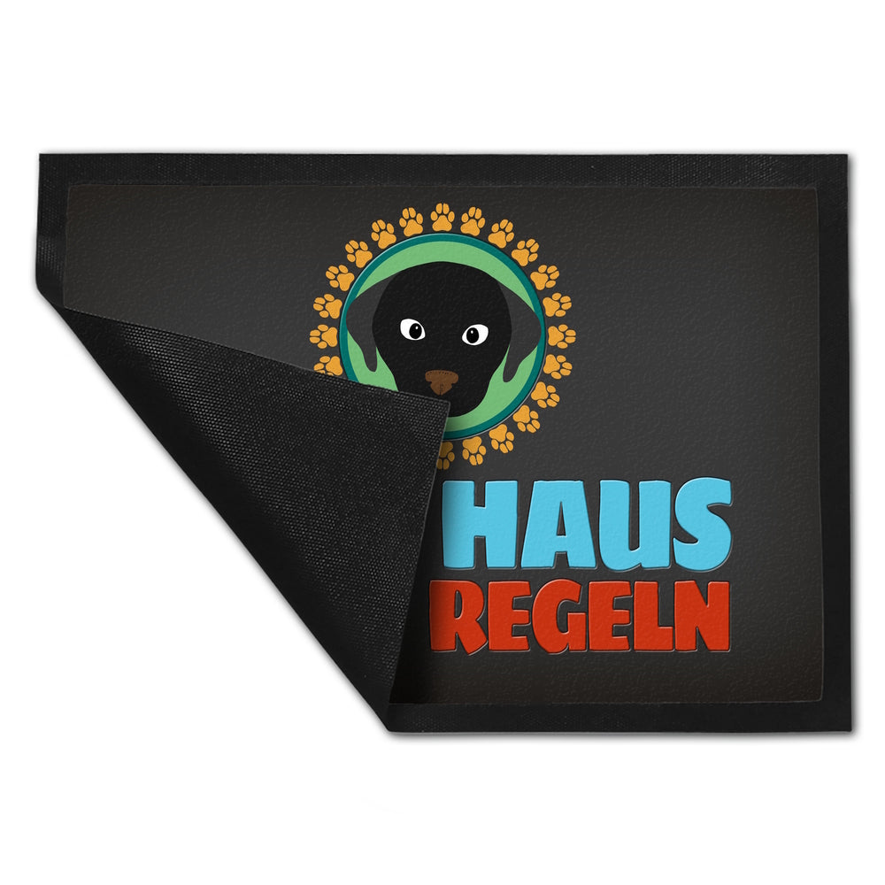 Mein Haus meine Regeln Fußmatte mit Hund Motiv - Haustier Hunde Wohnung Haus Familie Zuhause Rudel - 50x35 cm / Schwarzer Hund ist auf Lager und wird versandt, sobald es wieder verfügbar ist