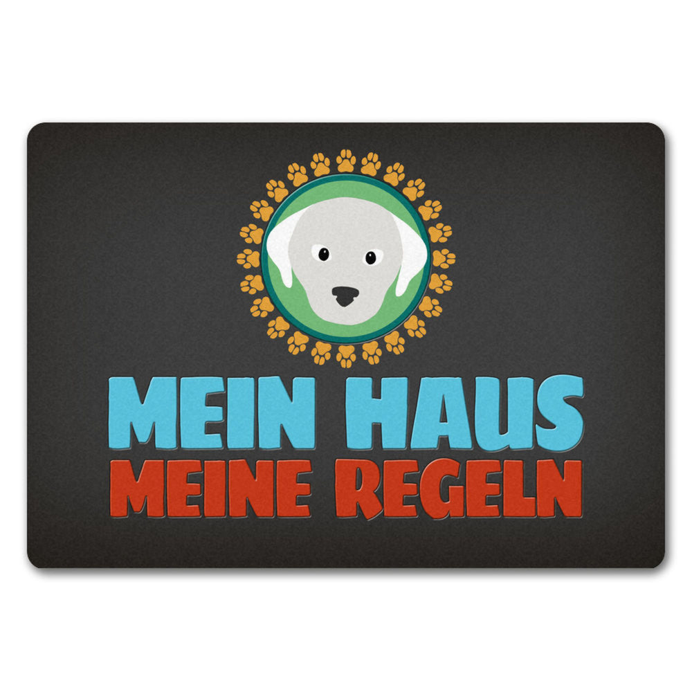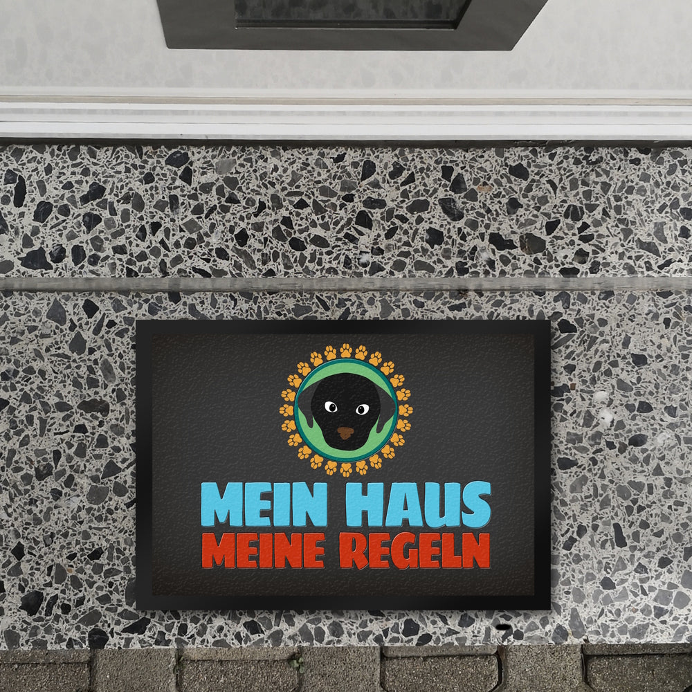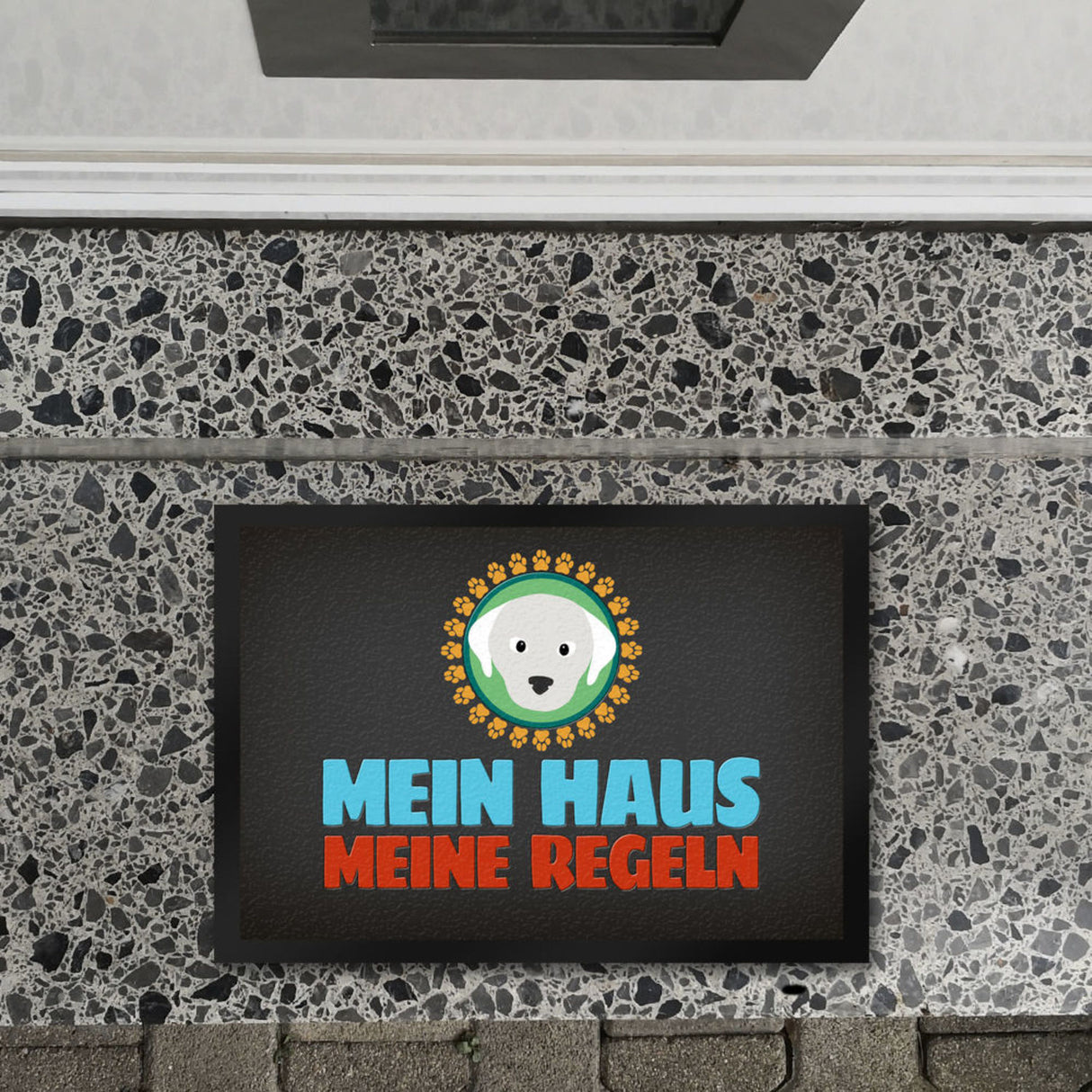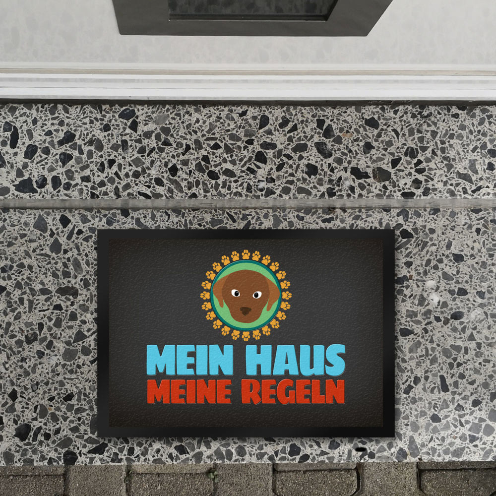 Mein Haus meine Regeln Fußmatte mit Hund Motiv - Haustier Hunde Wohnung Haus Familie Zuhause Rudel