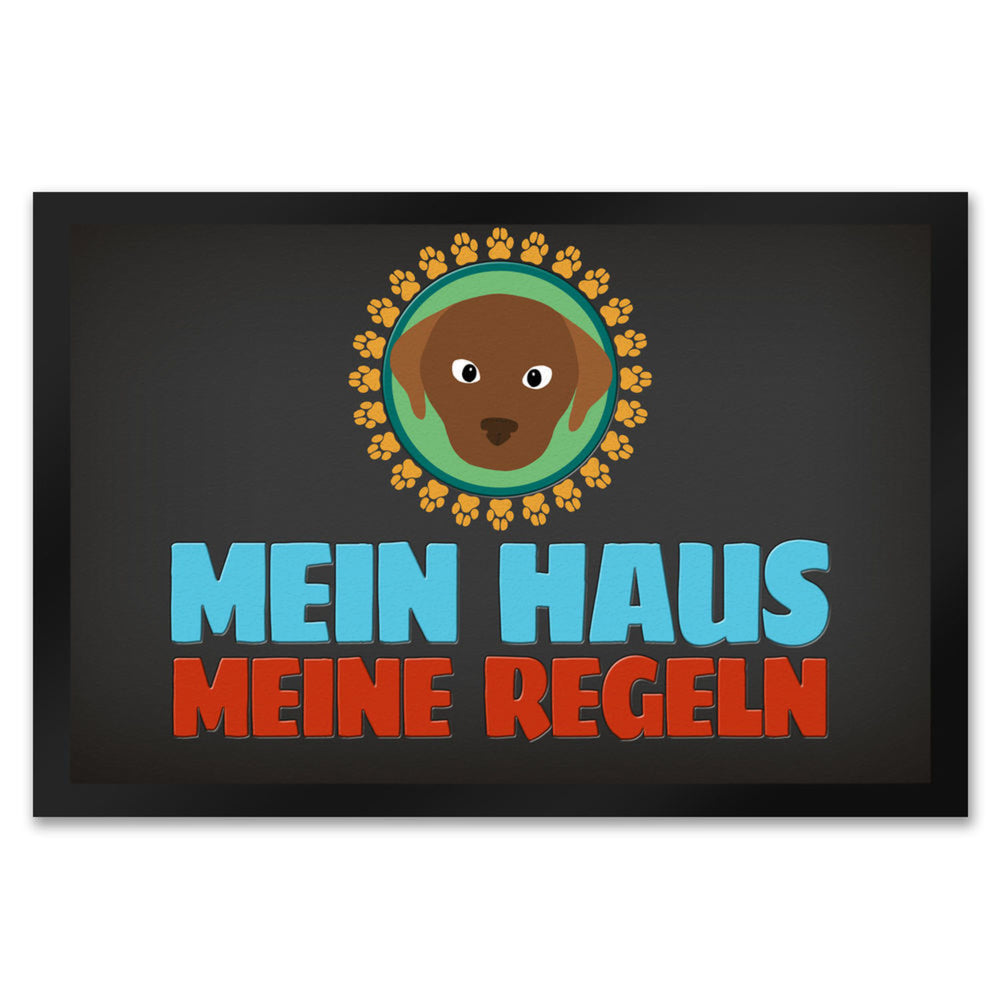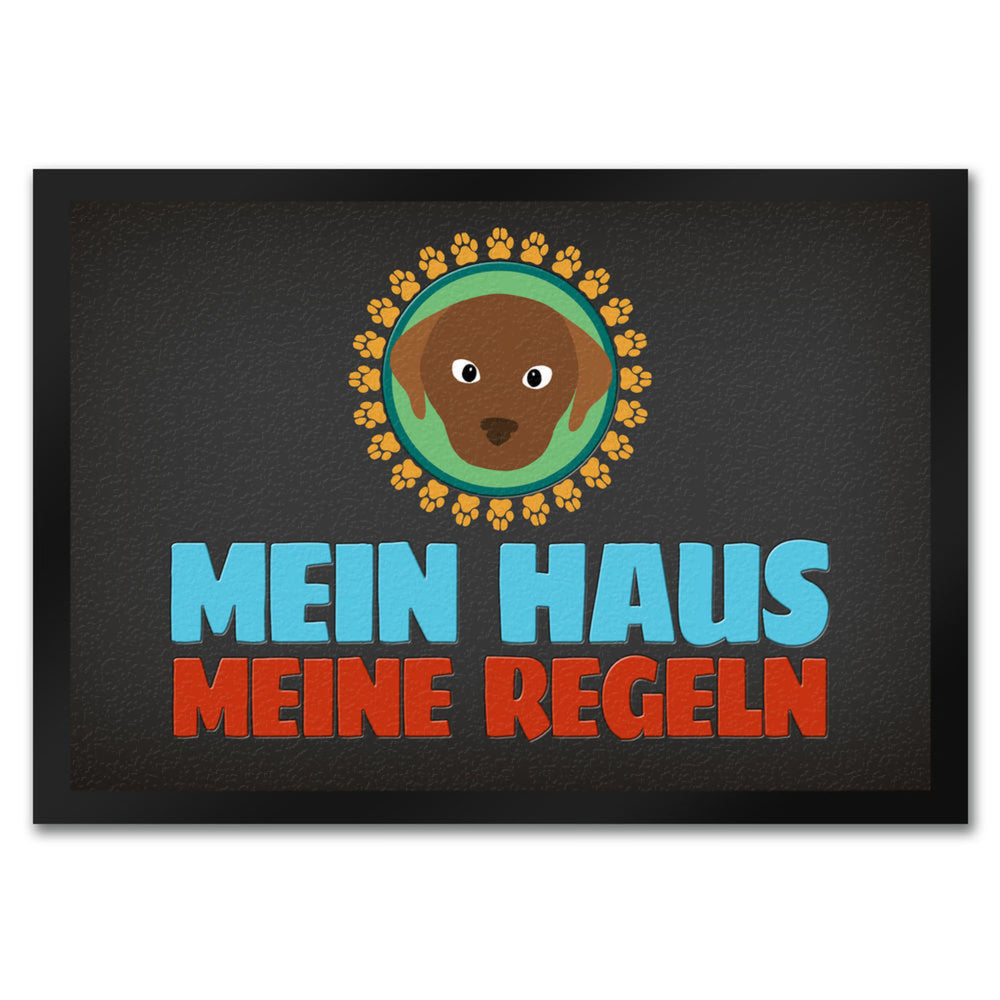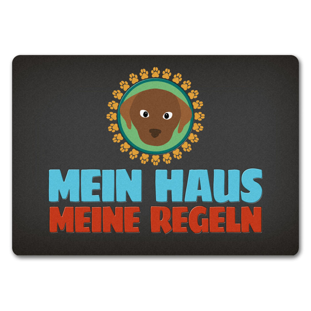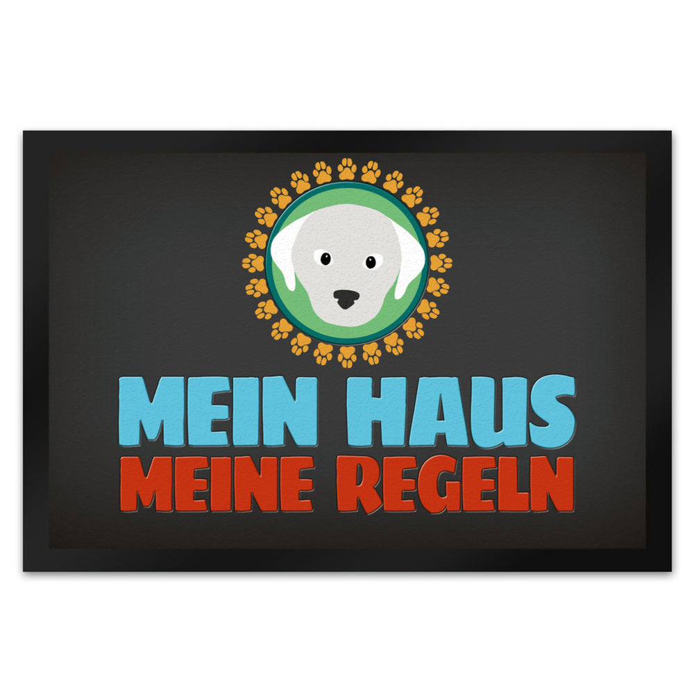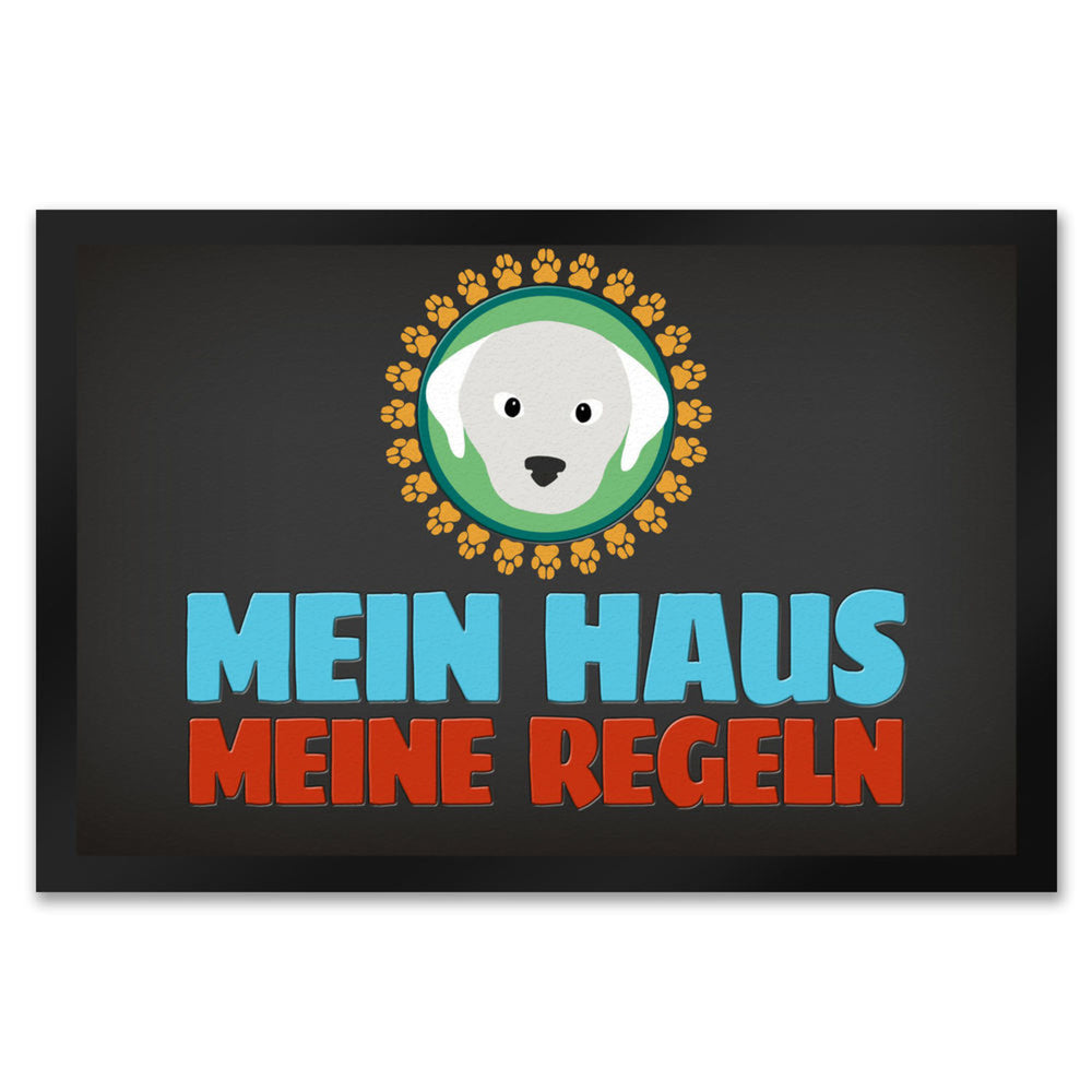 Mein Haus meine Regeln Fußmatte mit Hund Motiv - Haustier Hunde Wohnung Haus Familie Zuhause Rudel