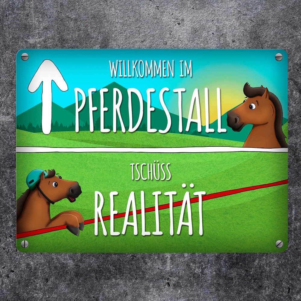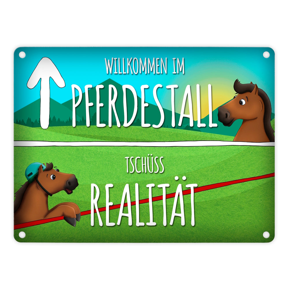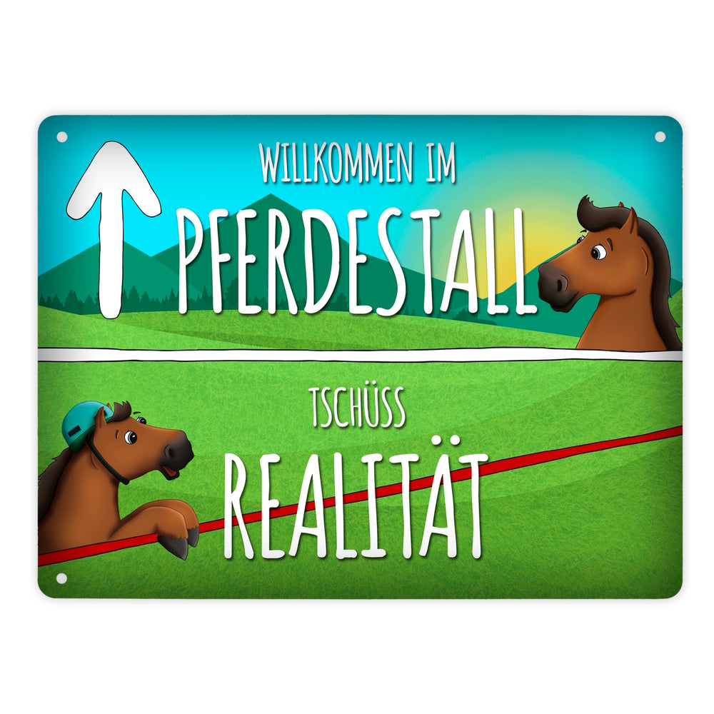• 1x Metallschild mit Pferde Motiv und Spruch: Willkommen im Pferdestall in der gewählten Größe