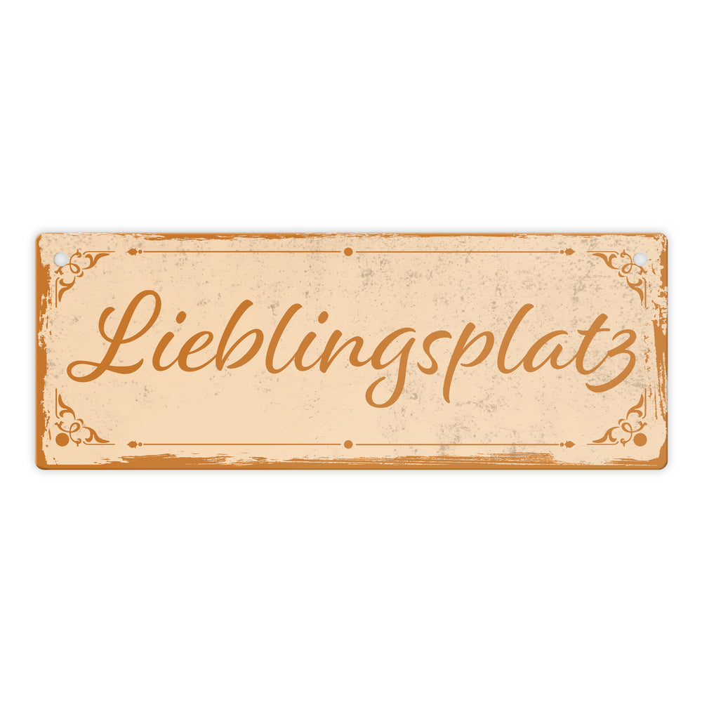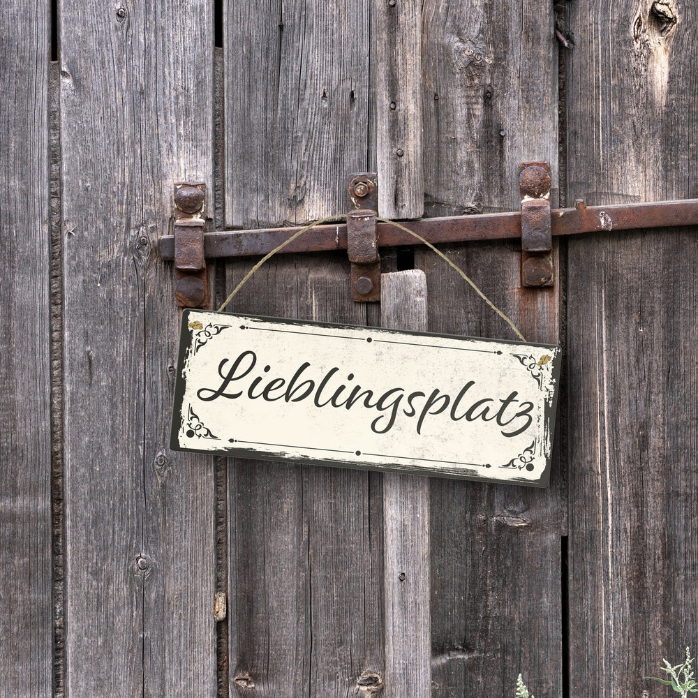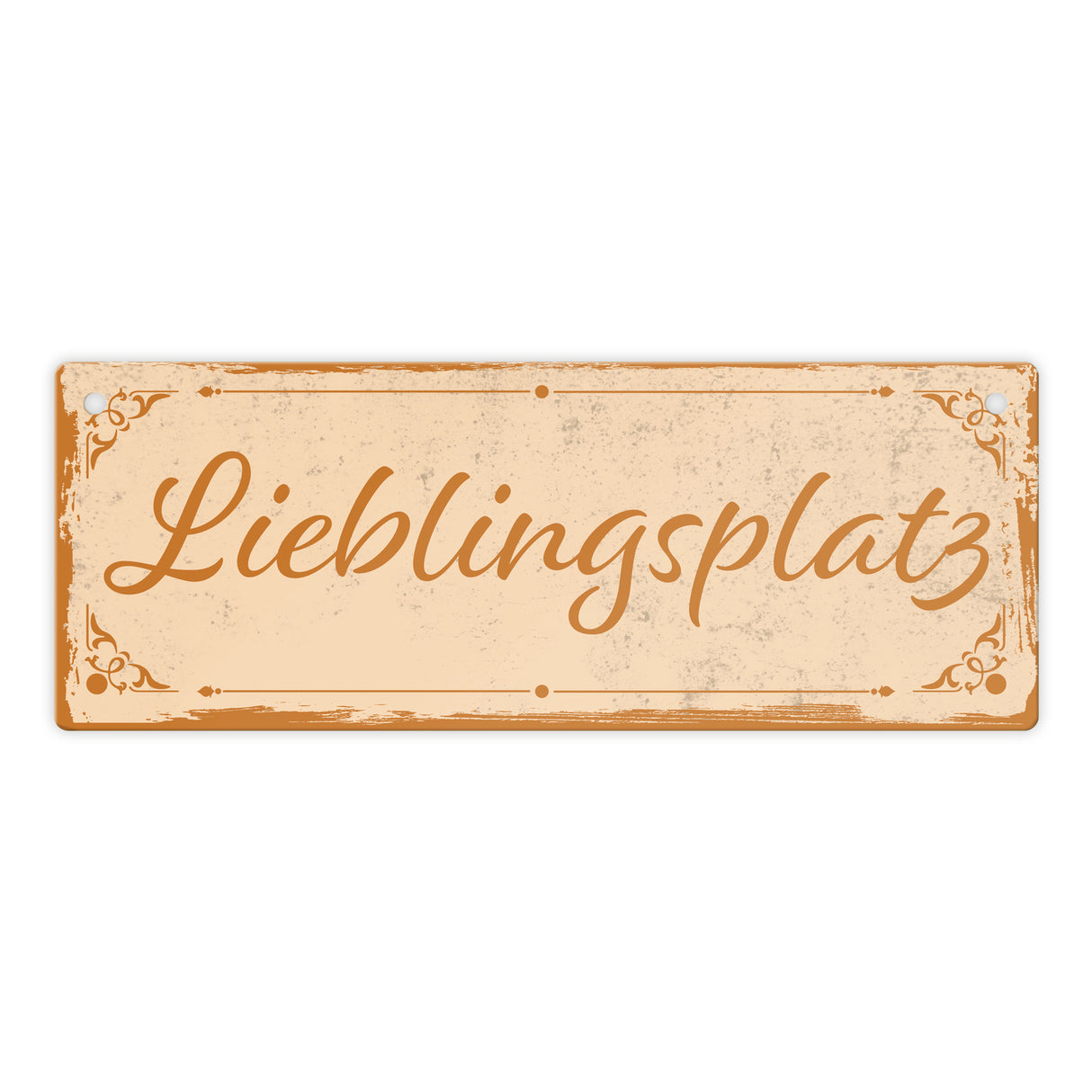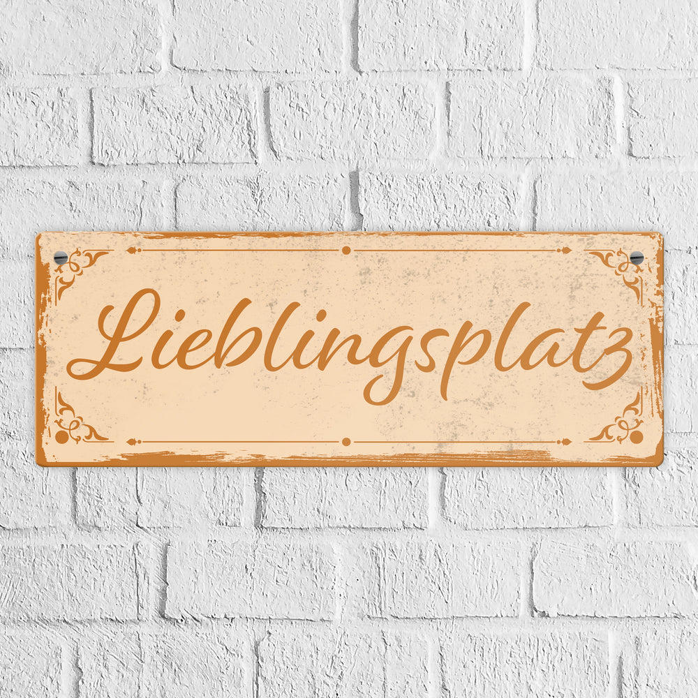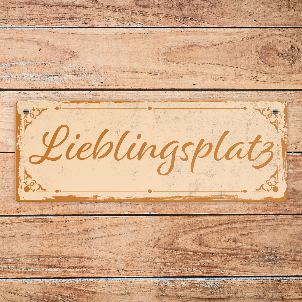- 1x Metallschild mit schönem Design - Lieblingsplatz im rustikalen Stil in Braun in der gewählten Größe